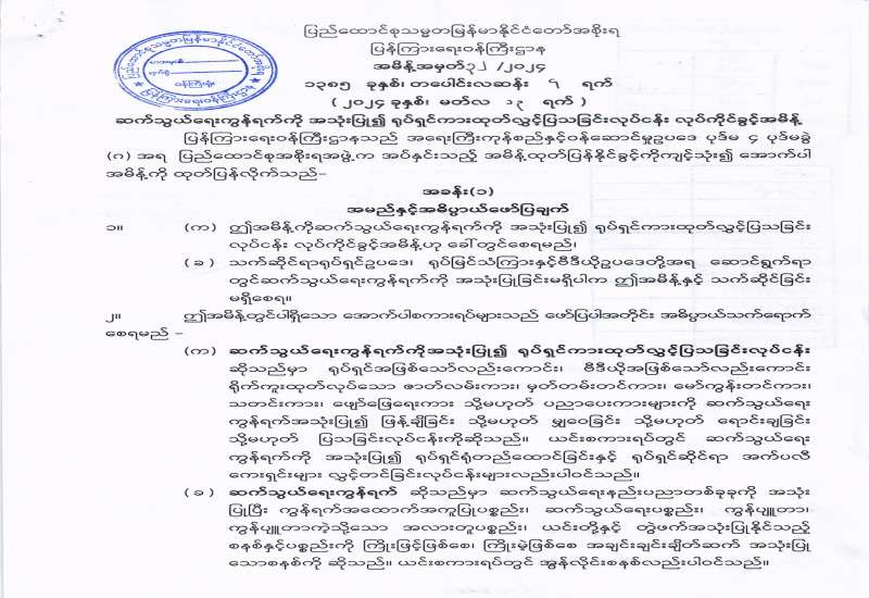 ပြန်ကြားရေးဝန်ကြီးဌာနသည် အရေးကြီးကုန်စည်နှင့်ဝန်ဆောင်မှုဥပဒေ ပုဒ် ၄ ပုဒ်မခွဲ (ဂ) အရ ပြည်ထောင်စုအစိုးရအဖွဲ့က အပ်နှင်းသည့် အမိန့်ထုတ်ပြန်နိုင်ခွင့်ကို ကျင့်သုံး၍ ဆက်သွယ်ရေးကွန်ရက်ကို အသုံးပြုကာ ရုပ်ရှင်ကားထုတ်လွှင့်ပြသခြင်းလုပ်ငန်း လုပ်ကိုင်ခွင့် အမိန့်ကို ၂၀၂၄ ခုနှစ်၊ မတ်လ ၁၃ ရက်နေ့တွင် ထုတ်ပြန်ကြေညာခဲ့သည်။