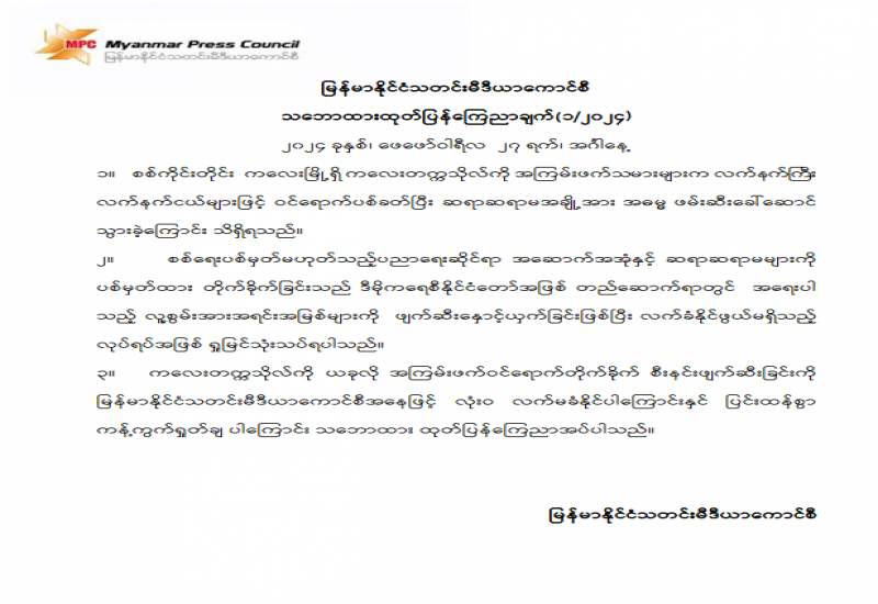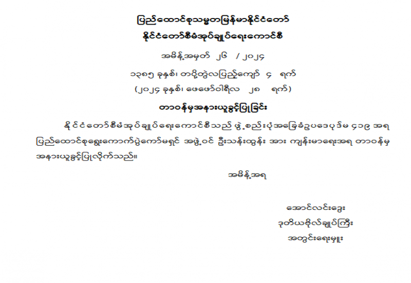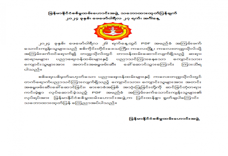 ပြည်ထောင်စုသမ္မတမြန်မာနိုင်ငံတော် နိုင်ငံတော်စီမံအုပ်ချုပ်ရေးကောင်စီ စစ်အုပ်ချုပ်ရေး (Martial Law) အမိန့်အမှတ် ၁/ ၂၀၂၄