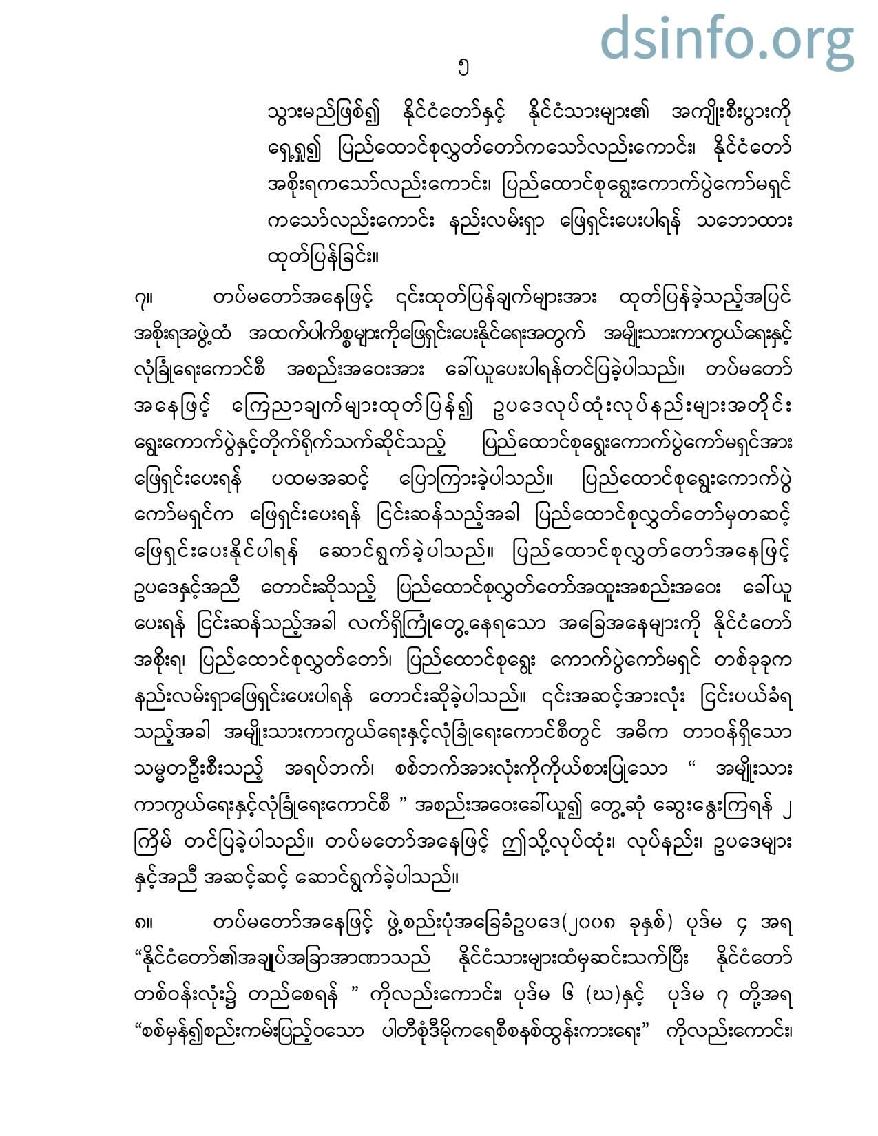 “ ပြည်သူများသို့အသိပေးတင်ပြချက်”