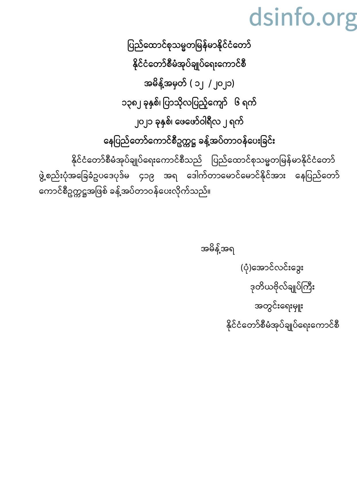 နေပြည်တော်ကောင်စီဥက္ကဋ္ဌ ခန့်အပ်တာဝန်ပေးခြင်း