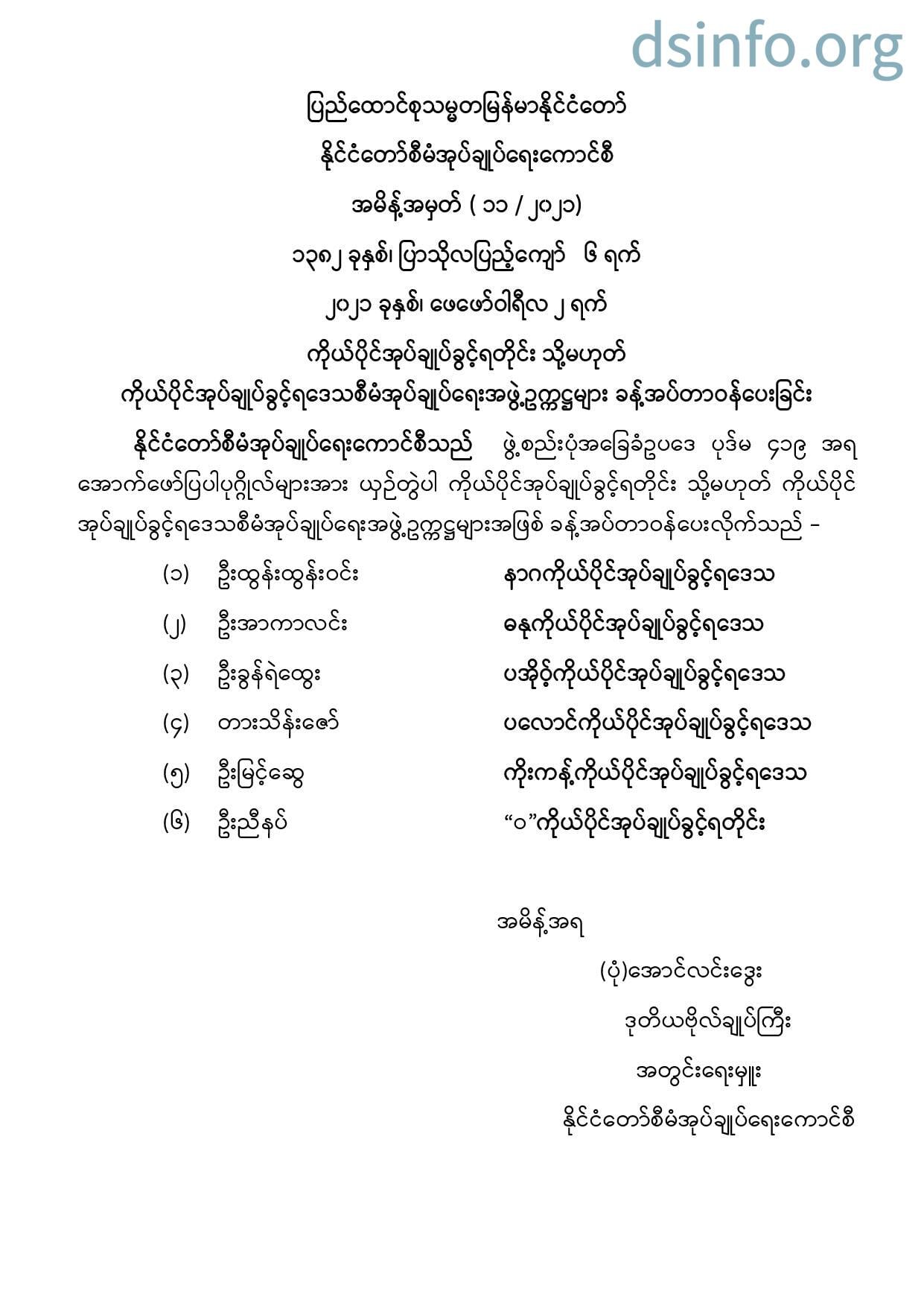 ကိုယ်ပိုင်အုပ်ချုပ်ခွင့်ရတိုင်း သို့မဟုတ် ကိုယ်ပိုင်အုပ်ချုပ်ခွင့်ရဒေသ စီမံအုပ်ချုပ်ရေးအဖွဲ့ဥက္ကဋ္ဌများ ခန့်အပ်တာဝန်ပေးခြင်း 02/02/2021