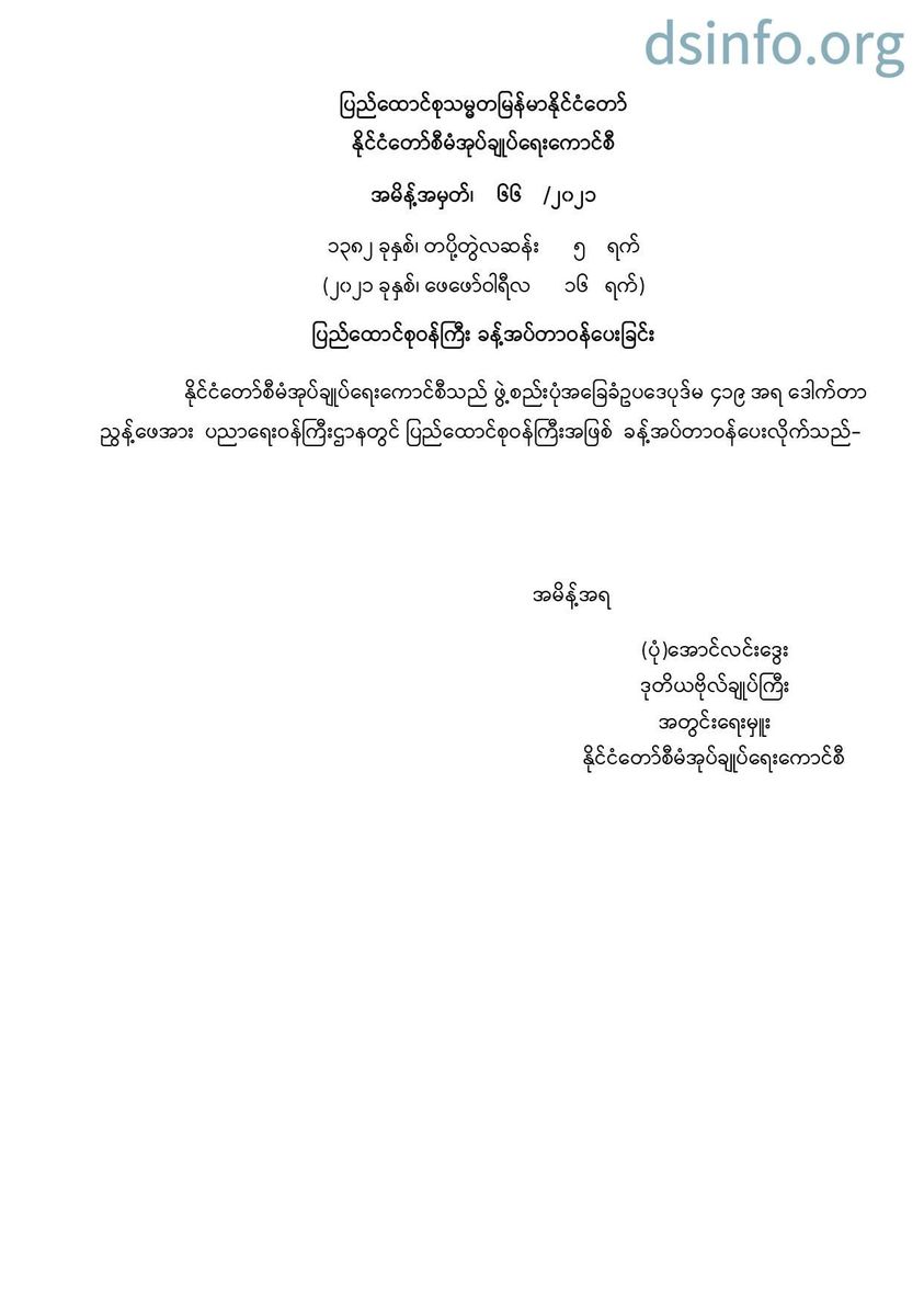 အမိန့်အမှတ်၊ ၆၆ /၂၀၂၁
