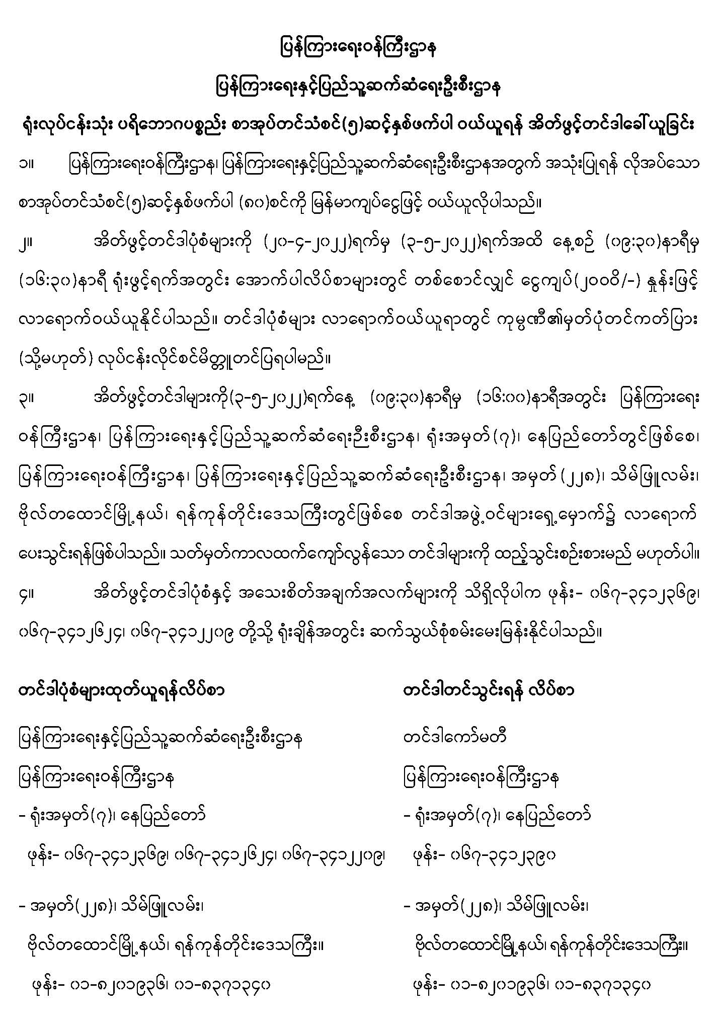 ရုံးလုပ်ငန်းသုံး ပရိဘောဂပစ္စည်း စာအုပ်တင်သံစင်(၅)ဆင့်နှစ်ဖက်ပါ ဝယ်ယူရန် အိတ်ဖွင့်တင်ဒါခေါ်ယူခြင်း