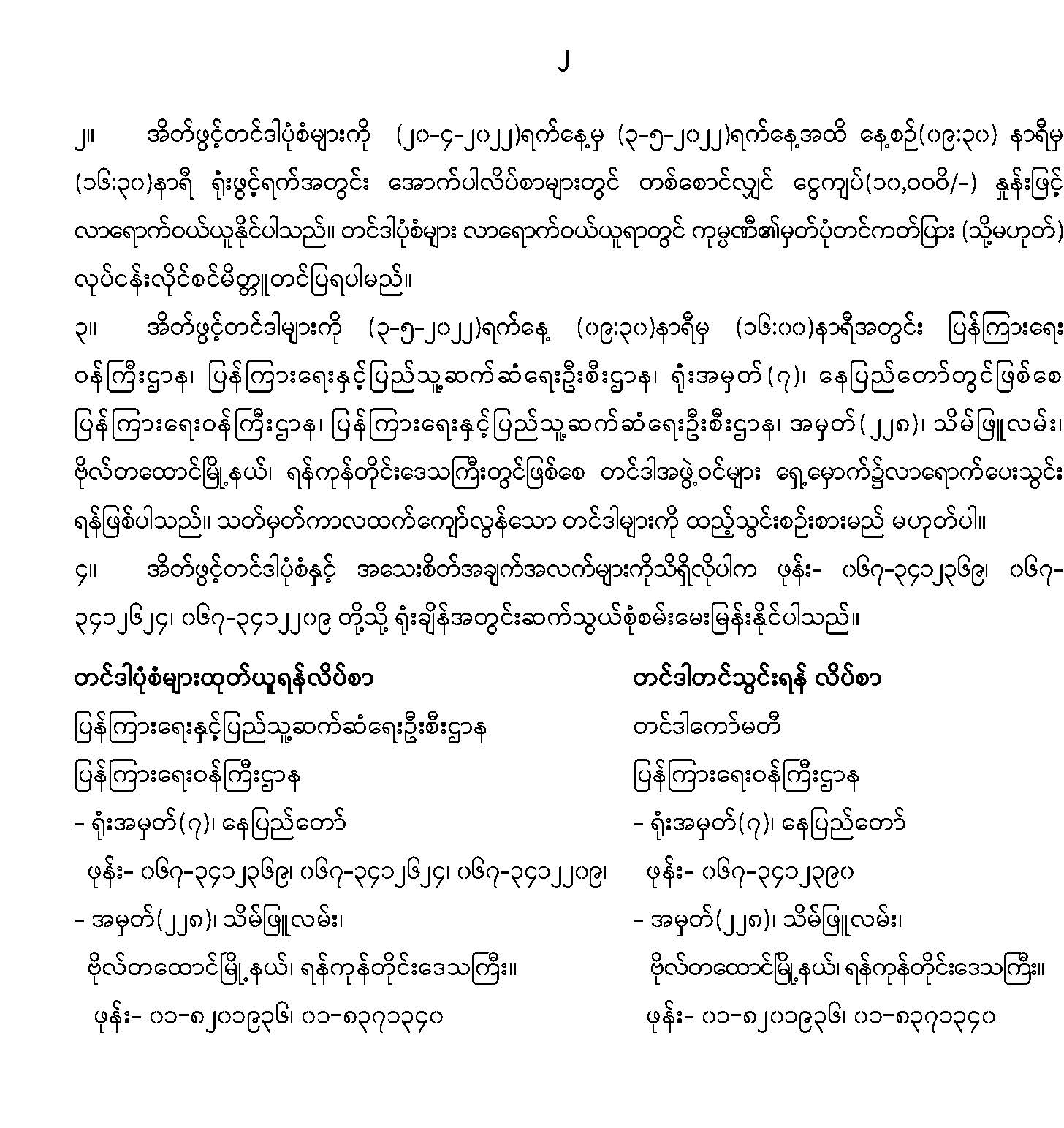 အခြားရုံးသုံးပစ္စည်းနှင့် ရုံးသုံးစက်ကိရိယာများ ဝယ်ယူရန် အိတ်ဖွင့်တင်ဒါခေါ်ယူခြင်း
