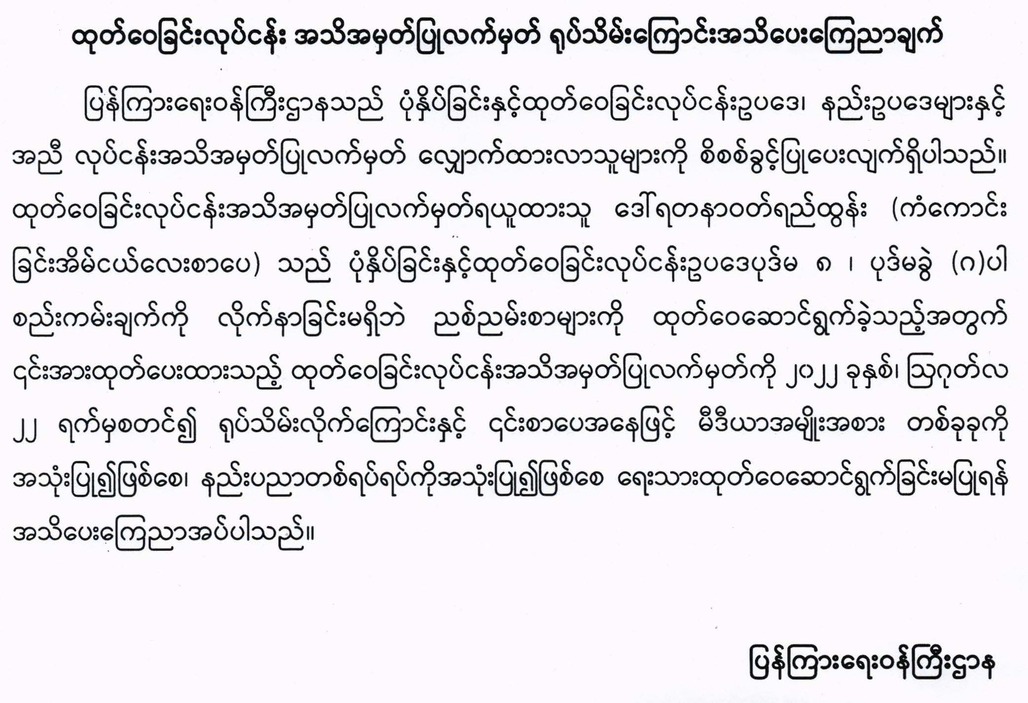 ထုတ်ဝေခြင်းလုပ်ငန်း အသိအမှတ်ပြုလက်မှတ် ရုပ်သိမ်းကြောင်း အသိပေးကြေညာချက် 08/23/2022 ထုတ်ဝေခြင်းလုပ်ငန်း အသိအမှတ်ပြုလက်မှတ် ရုပ်သိမ်းကြောင်း အသိပေးကြေညာချက်