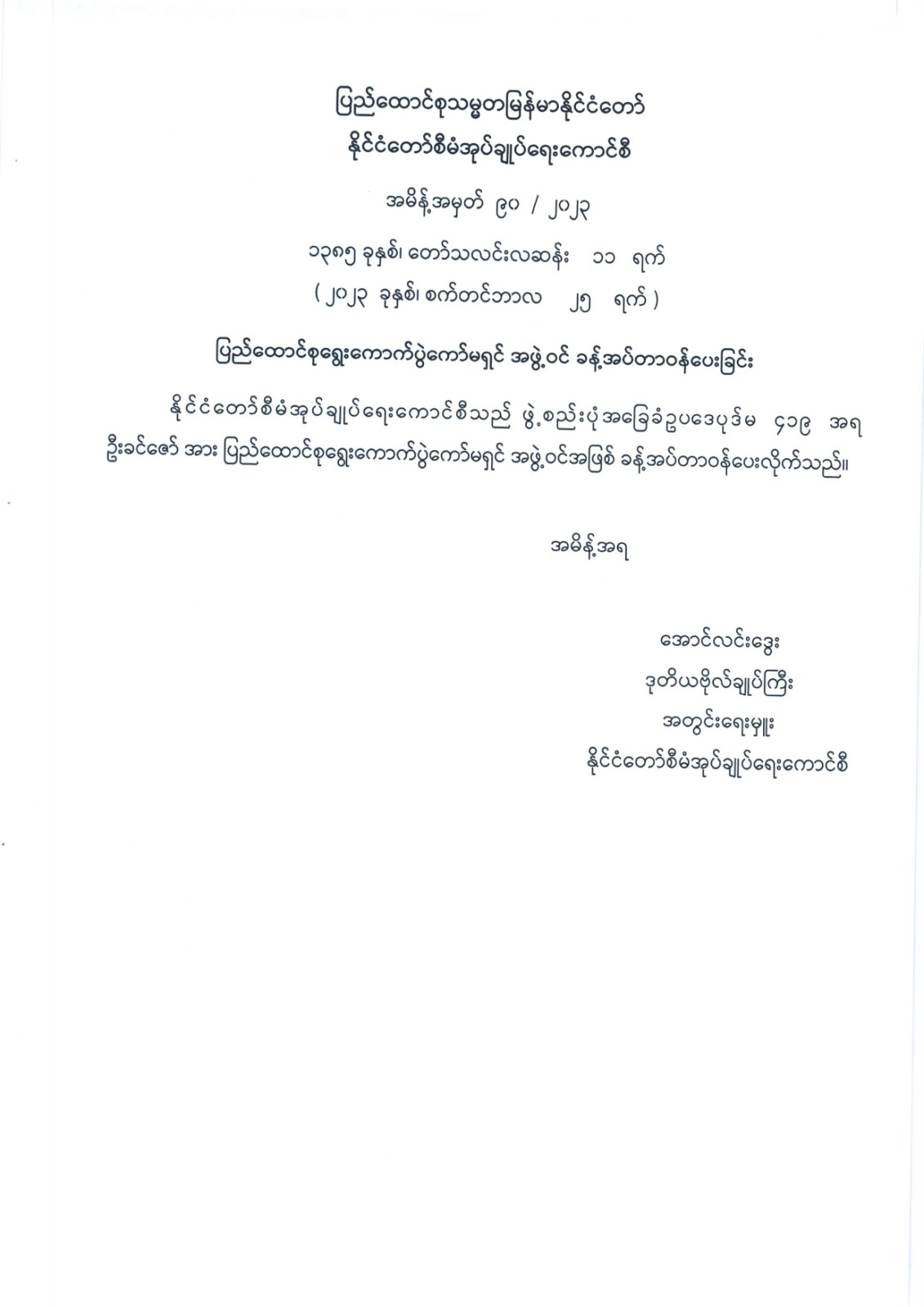 ပြည်ထောင်စုရွေးကောက်ပွဲကော်မရှင်အဖွဲ့ဝင် ခန့်အပ်တာဝန်ပေးခြင်း