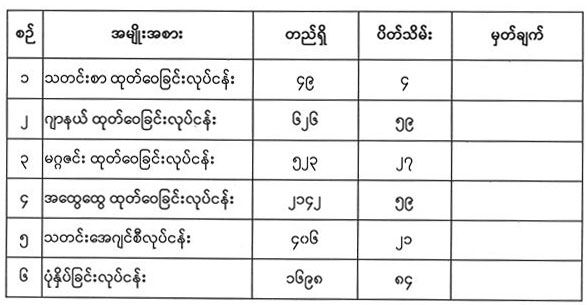 ပုံနှိပ်ခြင်းလုပ်ငန်း၊ ထုတ်ဝေခြင်းလုပ်ငန်း ( သတင်းစာ၊ ဂျာနယ်၊ မဂ္ဂဇင်း၊ အထွေထွေ) သတင်းအေဂျင်စီလုပ်ငန်းများ ခွင့်ပြုထားရှိမှုနှင့် ထုတ်ဝေမှုအခြေအနေ (၃၁-၁၀-၂၀၂၃) 11/06/2023