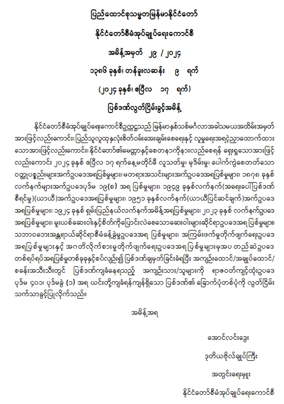 ပြည်ထောင်စုသမ္မတမြန်မာနိုင်ငံတော် နိုင်ငံတော်စီမံအုပ်ချုပ်ရေးကောင်စီ အမိန့်အမှတ် ၂၉ /၂၀၂၄