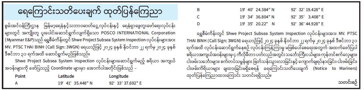 ရေကြောင်းသတိပေးချက် ထုတ်ပြန်ကြေညာ