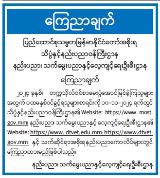 ပြည်ထောင်စုသမ္မတမြန်မာနိုင်ငံတော်အစိုးရ သိပ္ပံနှင့်နည်းပညာဝန်ကြီးဌာန နည်းပညာ၊ သက်မွေးပညာနှင့်လေ့ကျင့်ရေးဦးစီးဌာန ကြေညာချက်