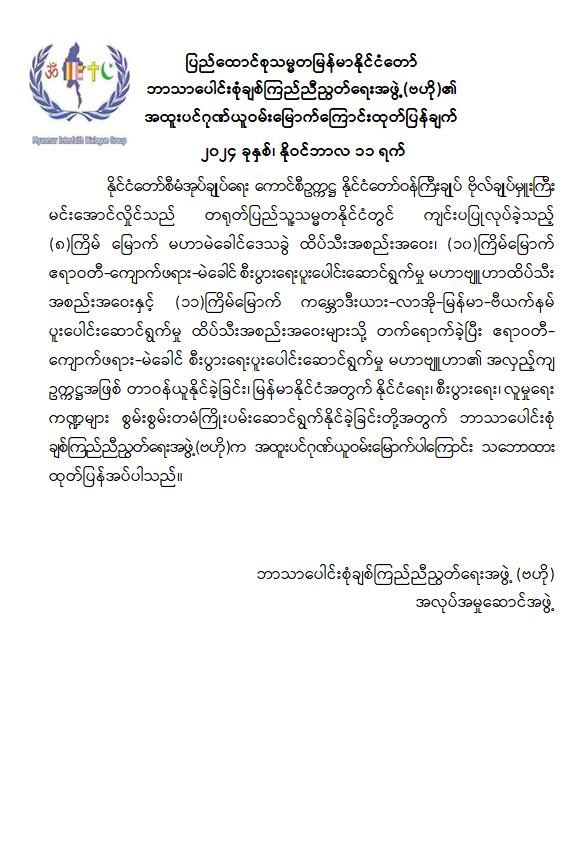 နိုင်ငံတော်စီမံအုပ်ချုပ်ရေးကောင်စီဥက္ကဋ္ဌ နိုင်ငံတော်ဝန်ကြီးချုပ် ဗိုလ်ချုပ်မှူးကြီး မင်းအောင်လှိုင်၏ တရုတ်နိုင်ငံခရီးစဉ်တွင် နိုင်ငံတော်အတွက် ကဏ္ဍစုံဖွံ့ဖြိုးတိုးတက်အောင် ကြိုးပမ်းဆောင်ရွက်ခဲ့မှုအပေါ် အဖွဲ့အစည်းများမှ ဂုဏ်ယူဝမ်းမြောက်ကြောင်း ထုတ်ပြန်ကြေညာ