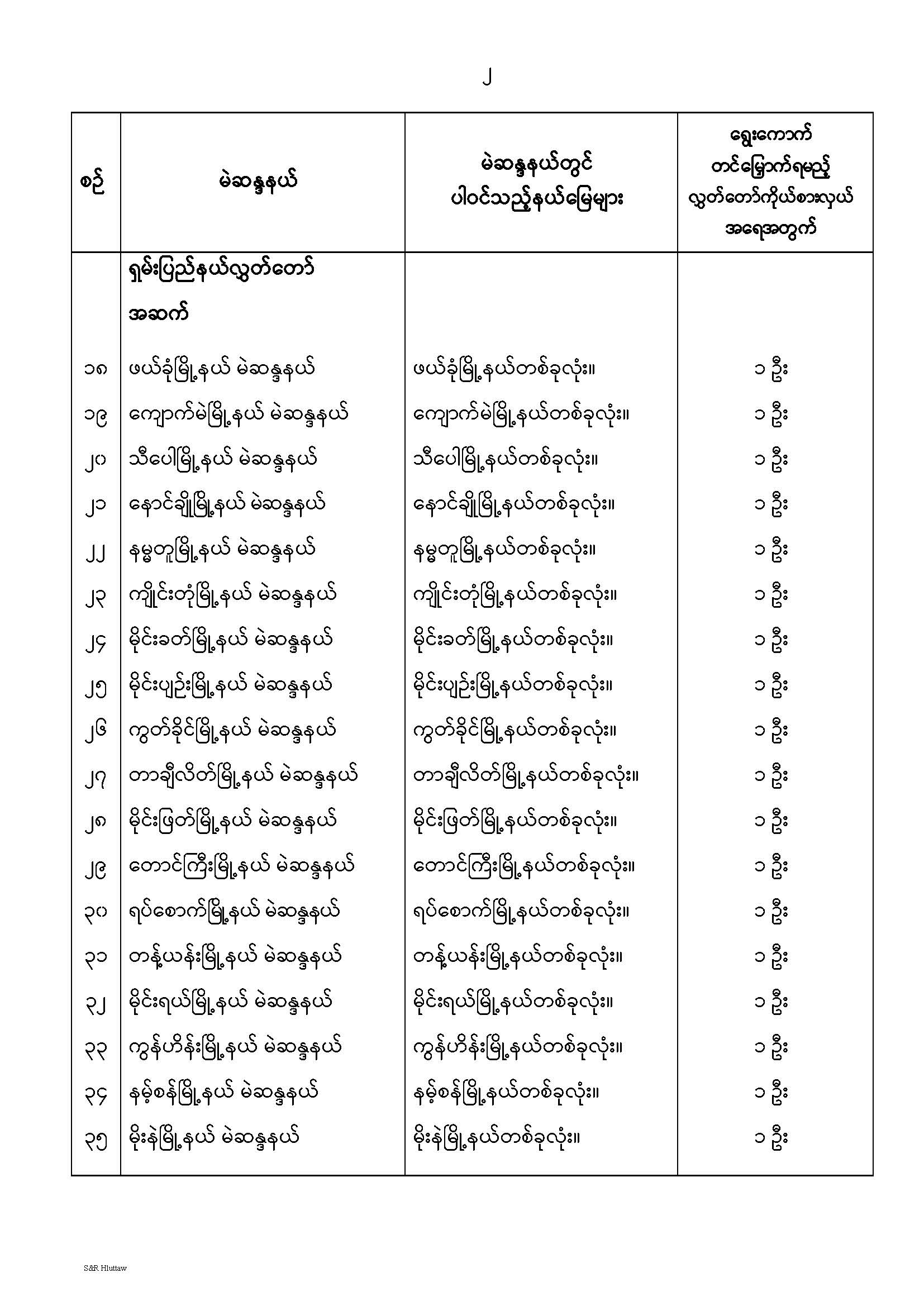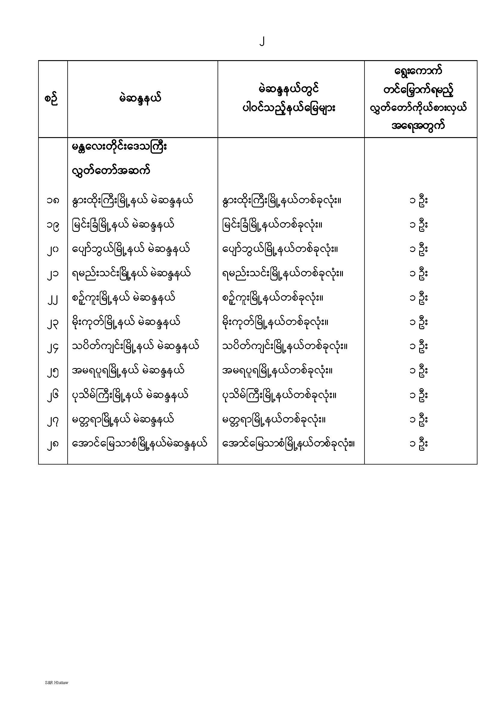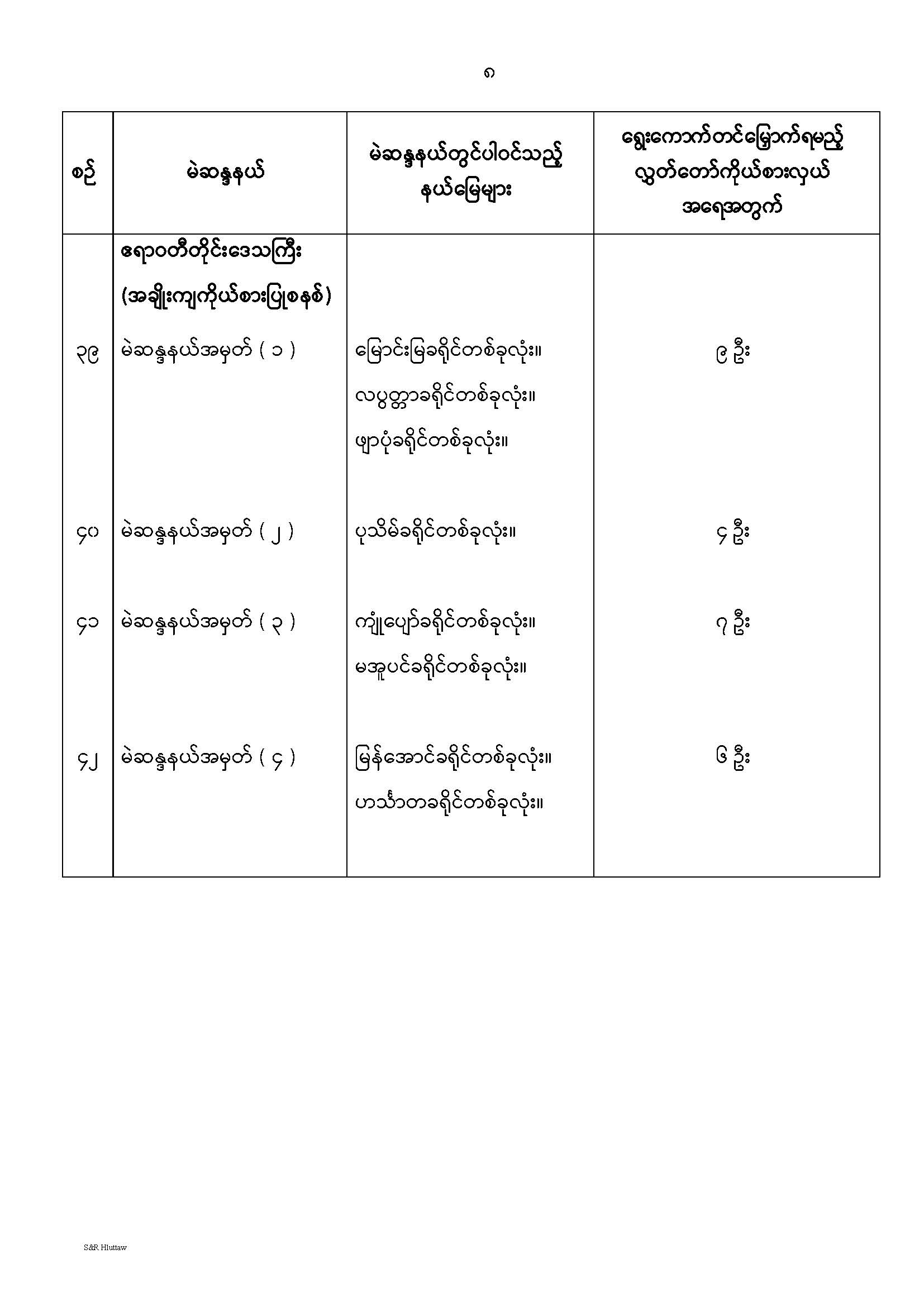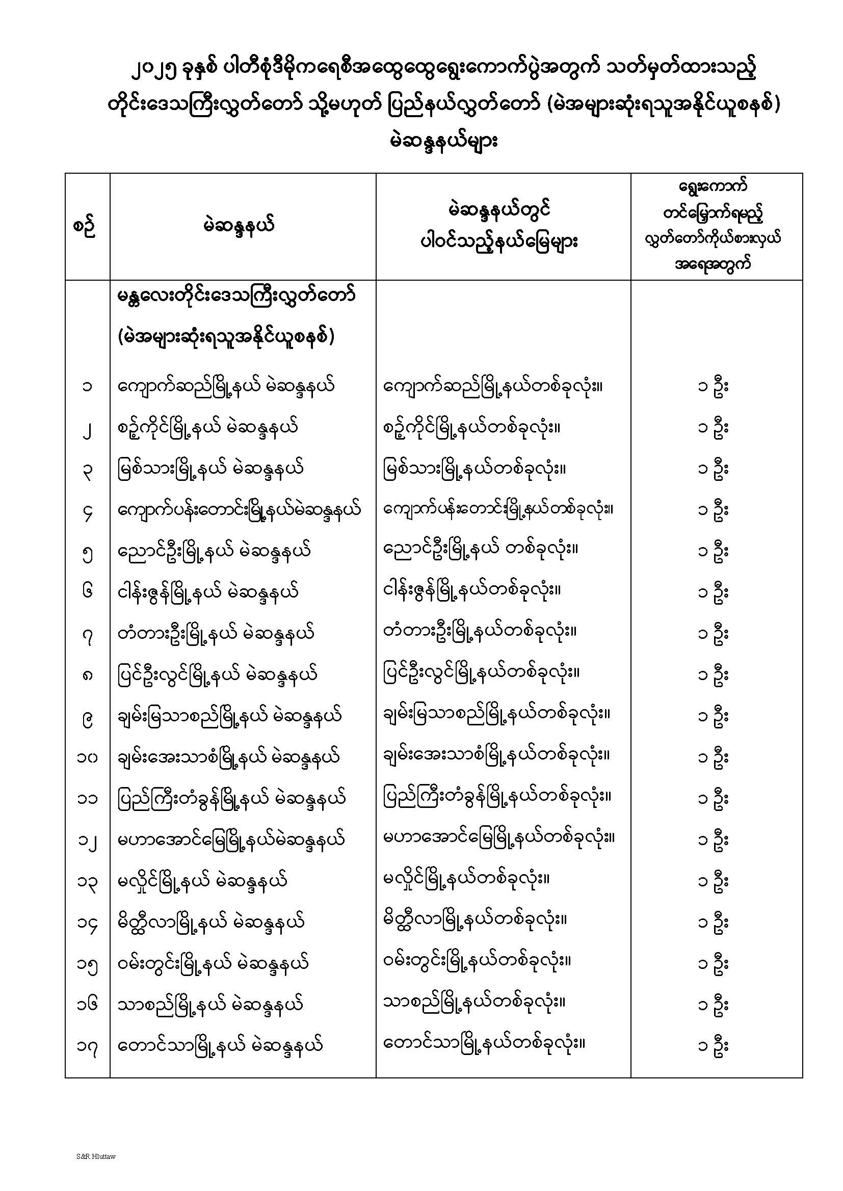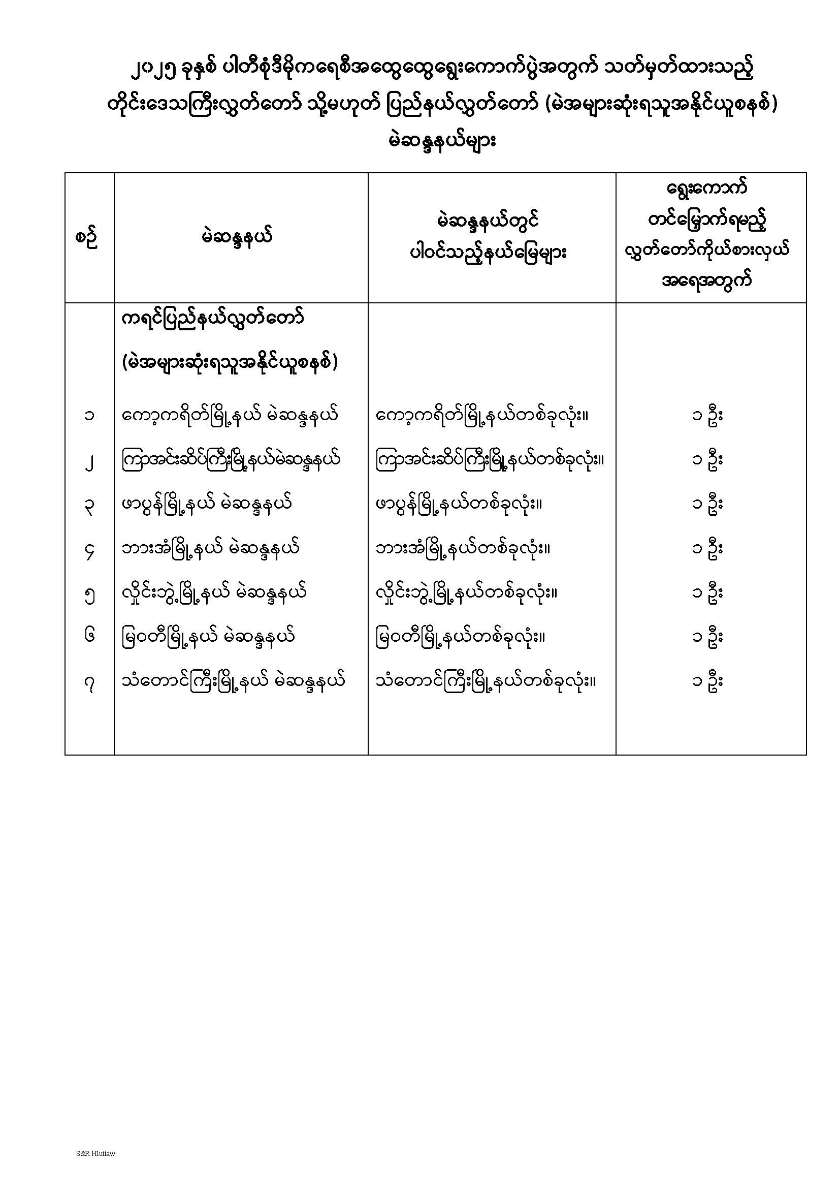 တိုင်းဒေသကြီးလွှတ်တော် သို့မဟုတ် ပြည်နယ်လွှတ်တော် မဲဆန္ဒနယ်များ သတ်မှတ်ကြေညာခြင်း