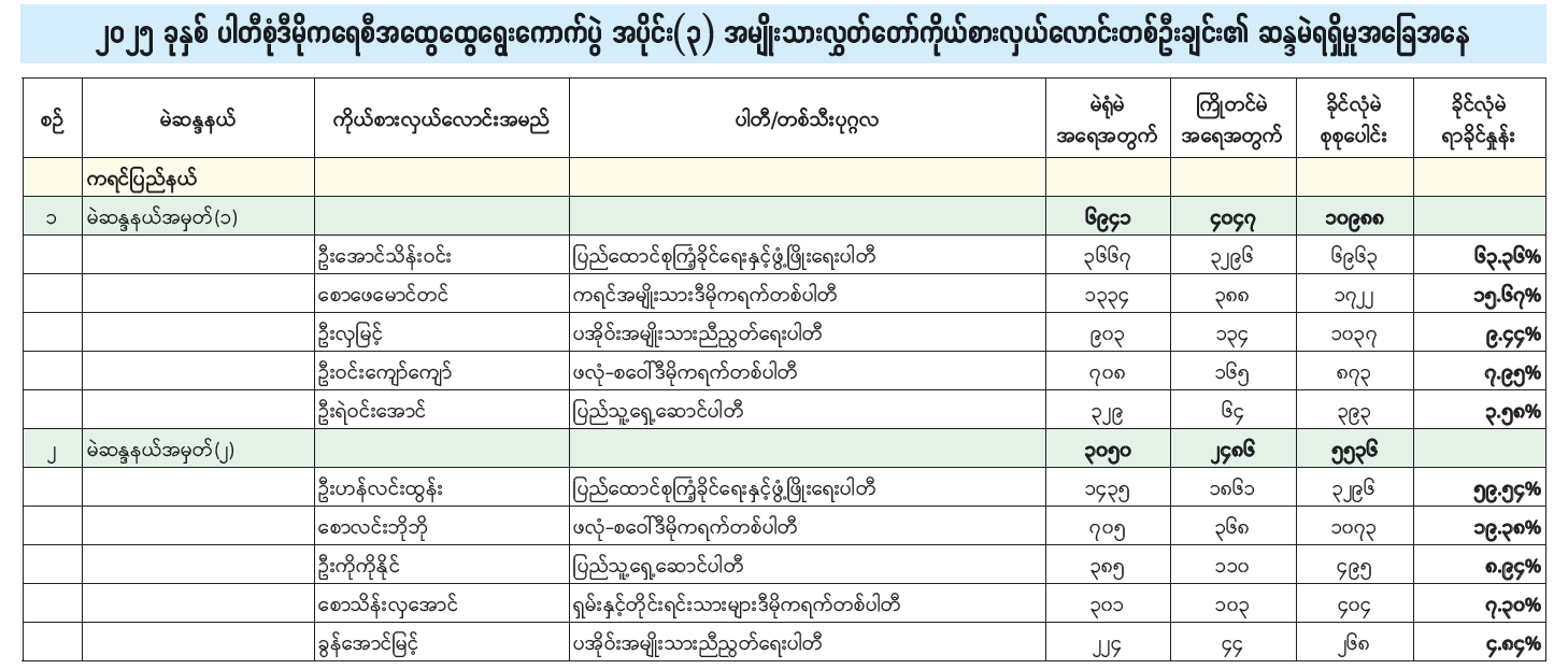 ၂၀၂၅ ခုနှစ် ပါတီစုံဒီမိုကရေစီအထွေထွေရွေးကောက်ပွဲ အပိုင်း(၃) အမျိုးသားလွှတ်တော်ကိုယ်စားလှယ်လောင်းတစ်ဦးချင်း၏ ဆန္ဒမဲရရှိမှုအခြေအနေ 01/30/2026