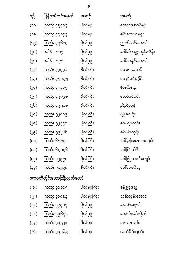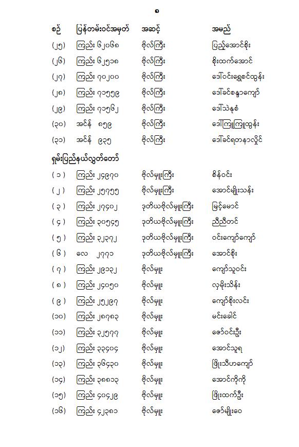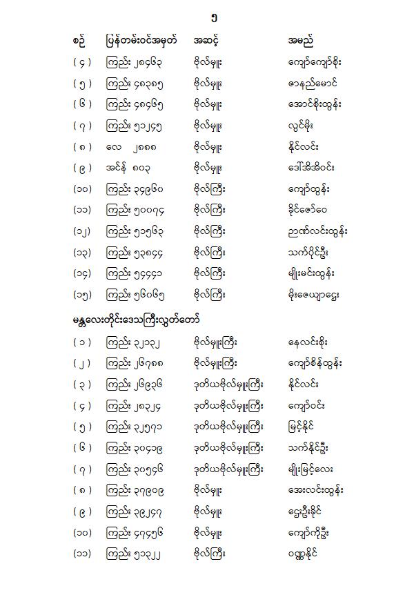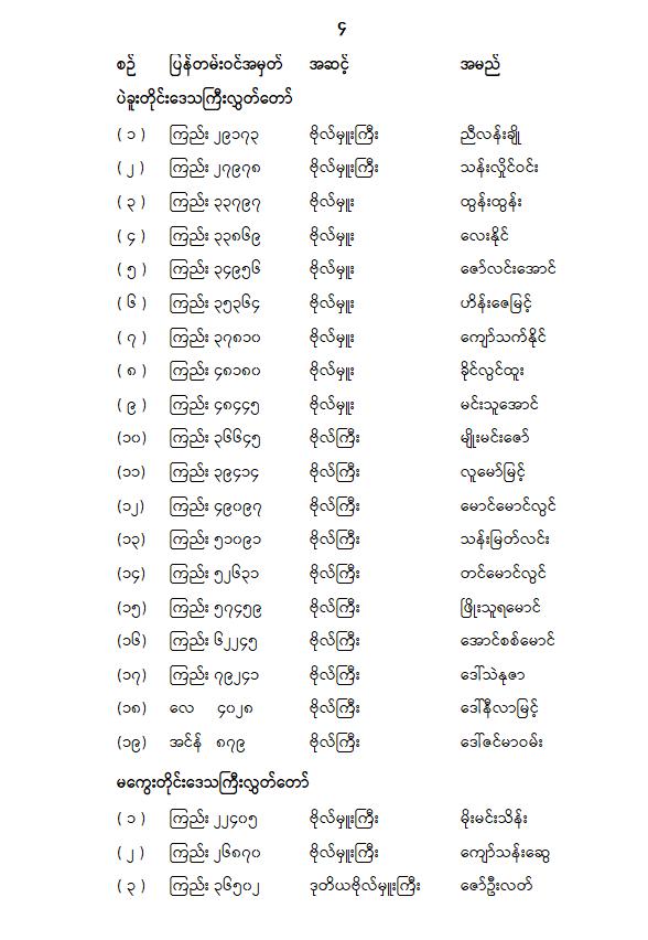 တပ်မတော်သား တိုင်းဒေသကြီးလွှတ်တော် သို့မဟုတ် ပြည်နယ်လွှတ်တော် ကိုယ်စားလှယ်အမည်စာရင်းကြေညာခြင်း 03/08/2026