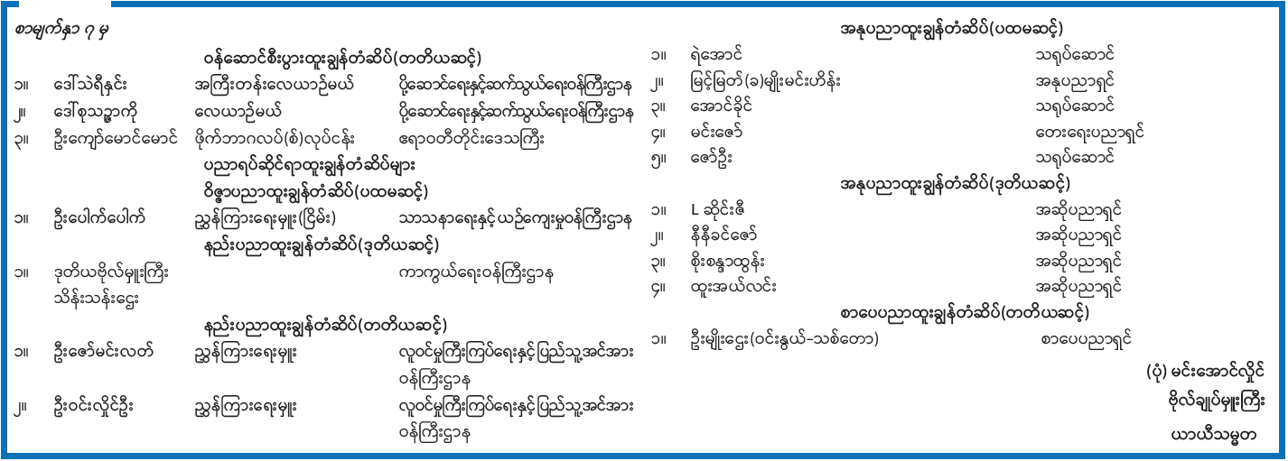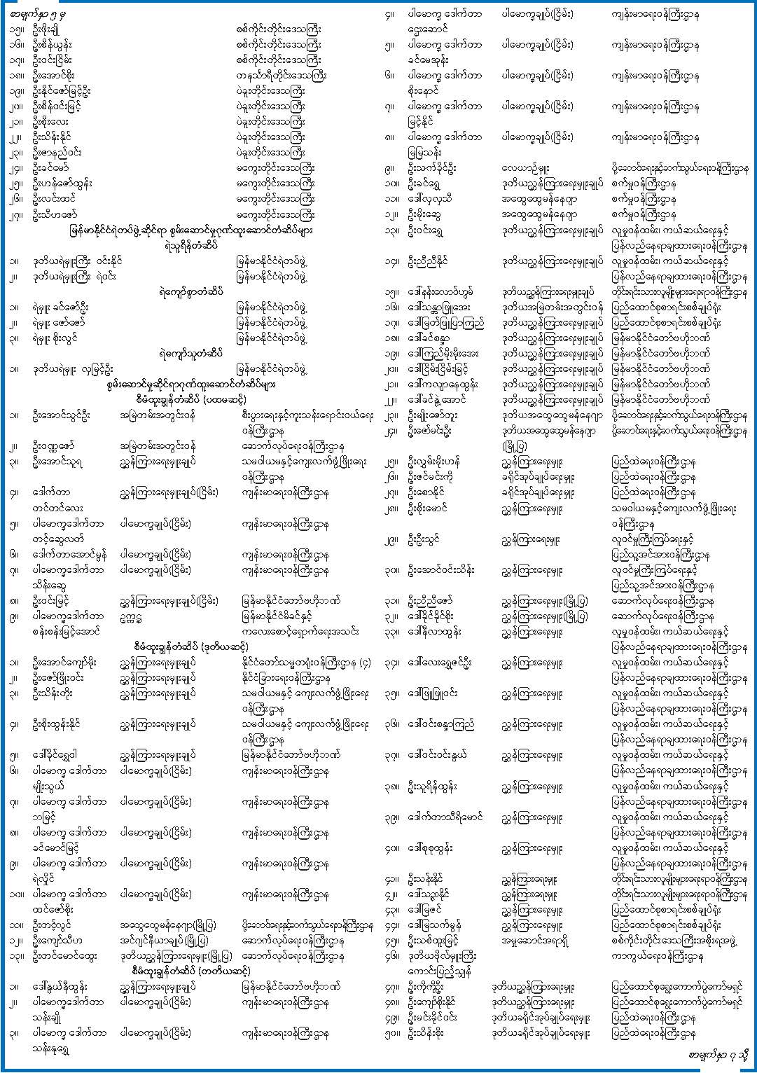 ဝန်ကြီးဌာန ကြေညာချက်များ