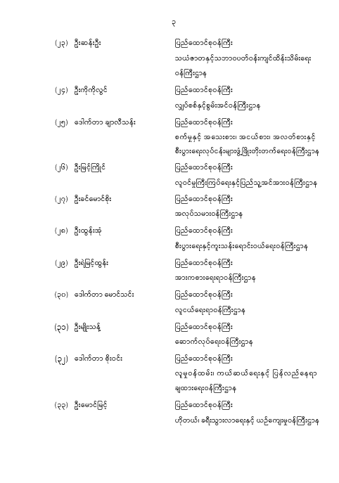 ဝန်ကြီးဌာန ကြေညာချက်များ