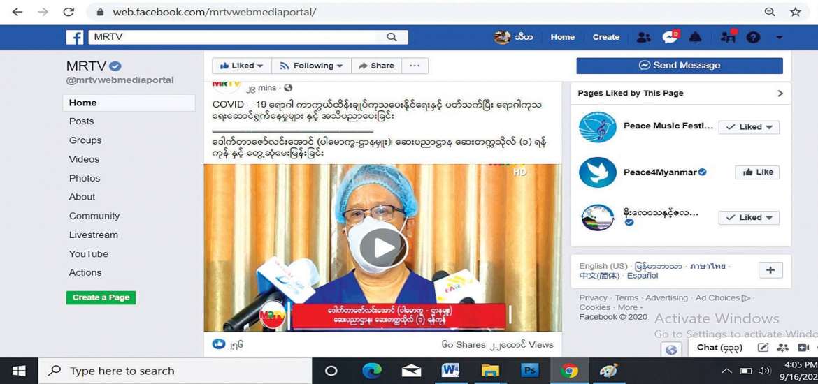 ပြန်ကြားရေးဝန်ကြီးဌာန၏ ကွပ်ကဲမှုဖြင့် အွန်လိုင်းပလက်ဖောင်းများမှတစ်ဆင့် ဒစ်ဂျစ်တယ် မီဒီယာကို သတင်းဌာန အသီးသီးက အကောင်အထည်ဖော် လျက်ရှိရာ ခိုင်မာမှန်ကန်၍ ဘက်မလိုက်မျှတသည့် သတင်းများ၊ ပညာပေးအစီအစဉ်များနှင့် သုတရသများစွာကို အွန်လိုင်းမှတစ်ဆင့် အသုံးပြုသူများထံ အရောက်တင်ဆက်နေပြီ ဖြစ်ပါကြောင်း။ ။