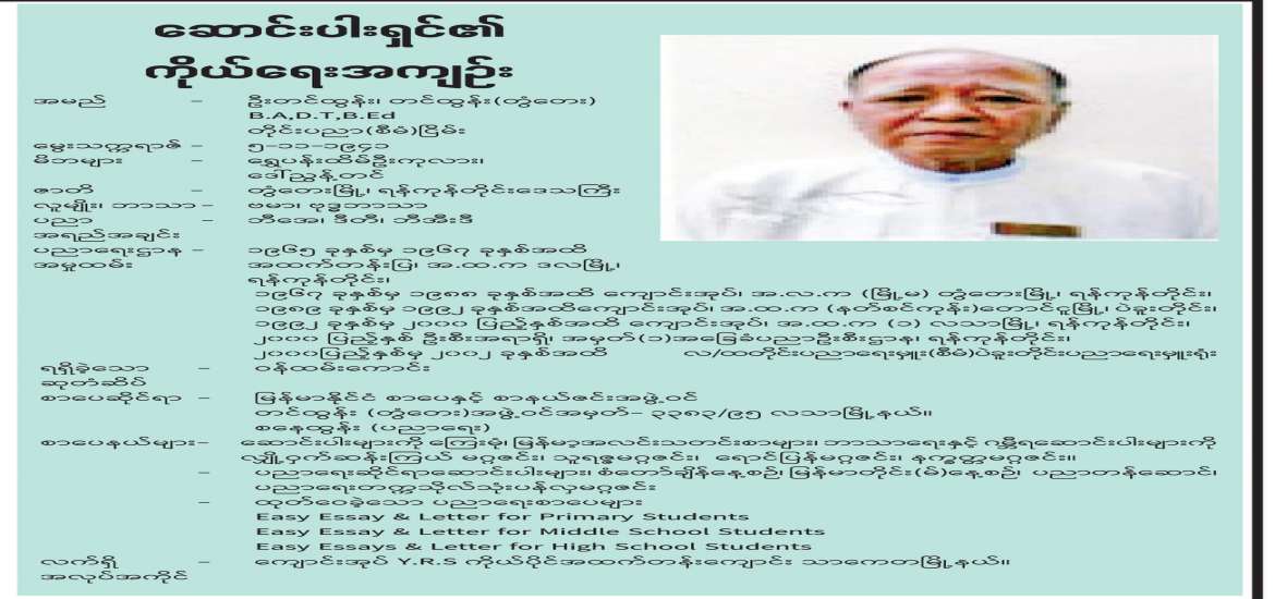 စာရေးသူအပါအဝင် သူငယ်ချင်းများတွင် သက်ရှိ ထင်ရှားရှိနေသူများအားလုံး အသက် ၈၀ နှင့် ၈၀ ကျော် ရှိနေကြ၍ မှတ်မိသမျှကို အလွမ်းပြေတင်ပြခြင်းဖြစ်၍ အပြည့်အစုံမရှိခဲ့ငြားအံ့၊ အမှားအယွင်း ရှိခဲ့ငြားအံ့ သည်းခံခွင့်လွှတ်ဖတ်ရှုပေးပြီး ဖြည့်စွက်သတိရ လွမ်းဆွတ် ပေးကြပါ ရန် အထူးမေတ္တာရပ်ခံရပါကြောင်း။ ။