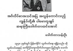 လမ်းထိပ် ကွင်းကျောင်းစာသင်တိုက်မှ အရုဏ်ဆွမ်းဘုဉ်းပေးရန် အချက်ပေး ကလတက်ခေါက်သံ နှင့်အတူ နိုးလာသည်။ ခေါင်းရင်းက အိပ်ခန်းပြတင်းပေါက်ကို ဖွင့်လိုက်သောအခါ အရှေ့အရပ်ဆီက တိမ်တိုက်ဖြူများသည် ပုစွန်ဆီသွေးရောင် ပက်ဖျန်းခြင်းခံထားရ၏။ “မင်္ဂလာပါနေမင်းကြီး”ဟု စိတ်ထဲက နှုတ်ခွန်းဆက်လိုက်ကာ ရေချိုးခန်းသွား၍ မျက်နှာသစ်လိုက်သည်။ မျက်နှာ သစ်ရင်း တစ်ကိုယ်လုံး ပိုလန်းသွားအောင် ရေပါချိုးပစ် လိုက်သည်။