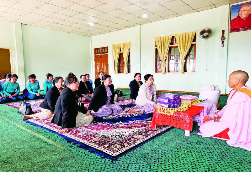 ၂၀၂၆ ခုနှစ်၊ သာသနာတော်ဆိုင်ရာ ဘွဲ့တံဆိပ်တော် ဆက်ကပ်ခံယူတော်မူမည့် ဆရာတော်ကြီးများအား နေ့ဆွမ်းဆက်ကပ်လှူဒါန်းခြင်းကို ယနေ့နံနက်ပိုင်းတွင် နေပြည်တော်၊ မာရဝိဇယဗုဒ္ဓဥယျာဉ်တော်ပရိဝုဏ်အတွင်းရှိ အဂ္ဂါဓိပတိသာသနာ့ဗိမာန်တော်ကြီး၌ ကျင်းပရာ ပြည်ထောင်စုသမ္မတမြန်မာနိုင်ငံတော်ယာယီသမ္မတ နိုင်ငံတော်လုံခြုံရေးနှင့်အေးချမ်းသာယာရေးကော်မရှင်ဥက္ကဋ္ဌ ဗိုလ်ချုပ်မှူးကြီး မင်းအောင်လှိုင်နှင့် ဇနီး ဒေါ်ကြူကြူလှတို့ တက်ရောက်၍ နေ့ဆွမ်းဆက်ကပ်လှူဒါန်းသည်။