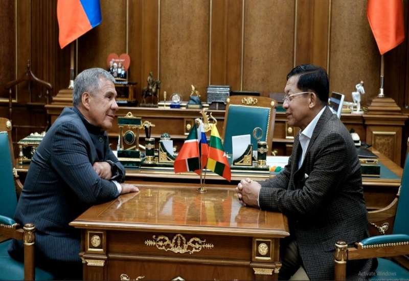 ရုရှားဖက်ဒရေးရှင်းနိုင်ငံသို့ရောက်ရှိနေသည့် နိုင်ငံတော်စီမံအုပ်ချုပ်ရေးကောင်စီဥက္ကဋ္ဌ၊ နိုင်ငံတော်ဝန်ကြီးချုပ် ဗိုလ်ချုပ်မှူးကြီးမင်းအောင်လှိုင် ဦးဆောင်သည့် ကိုယ်စားလှယ်အဖွဲ့သည် စစ်သံမှူးဗိုလ်မှူးချုပ်မိုးကျော်နှင့် တာဝန်ရှိသူများလိုက်ပါ၍ ယနေ့ဒေသစံတော်ချိန် ညနေပိုင်း တွင် Republic of the Tatarstan ၊ ကာဇန်မြို့၊ ကာဇန်လေဆိပ်သို့ ရောက်ရှိကြရာ Republic of the Tatarstan သမ္မတMr. Rustam Nurgaliyevich Minnikhanov နှင့် တာဝန်ရှိသူတို့က ရိုးရာဓလေ့ထုံးတမ်းစဉ်လာများနှင့်အညီ ခင်မင်ရင်းနှီးစွာ ကြိုဆိုနှုတ်ဆက်ကြသည်။