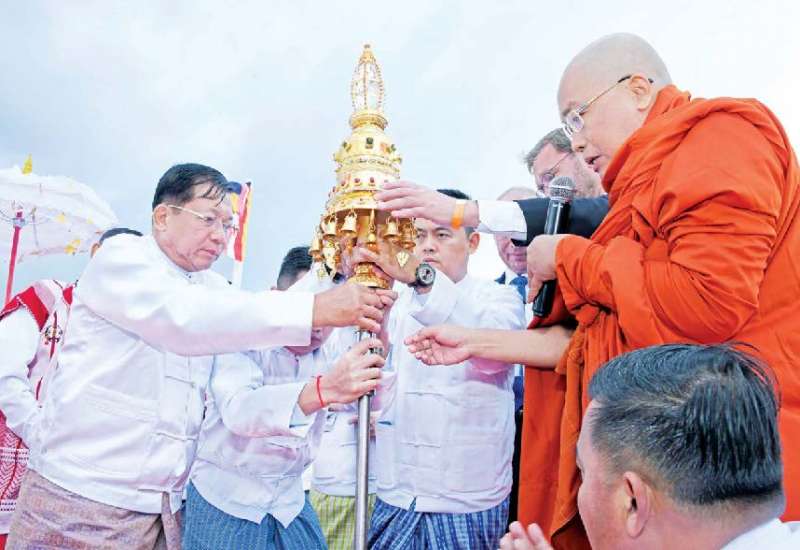၂၀၂၂ ခုနှစ်၊ ကာကွယ်ရေးဦးစီးချုပ်ရုံး (ကြည်း၊ ရေ၊ လေ) မိသားစုများ ဝါဆိုသင်္ကန်း ဆက်ကပ်လှူဒါန်းပွဲ မဟာမင်္ဂလာအခမ်းအနားကို ယနေ့နံနက်ပိုင်းတွင် ကာကွယ်ရေးဦးစီးချုပ်ရုံး (ကြည်း)၊ အနော်ရထာခန်းမ၌ ကျင်းပပြုလုပ်ရာ နိုင်ငံတော်စီမံအုပ်ချုပ်ရေးကောင်စီဥက္ကဋ္ဌ တပ်မတော်ကာကွယ်ရေးဦးစီးချုပ် ဗိုလ်ချုပ်မှူးကြီး မင်းအောင်လှိုင်နှင့်ဇနီး ဒေါ်ကြူကြူလှ တို့ တက်ရောက်ကြည်ညို၍ ဝါဆိုသင်္ကန်း၊ လှူဖွယ်ပစ္စည်းများနှင့် နေ့ဆွမ်းတို့ကို ဆက်ကပ်လှူဒါန်းသည်။