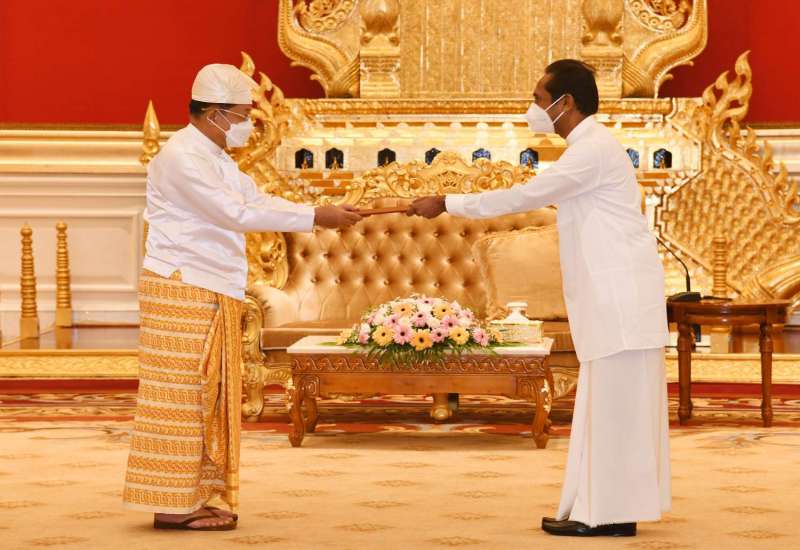 နိုင်ငံတော်စီမံအုပ်ချုပ်ရေးကောင်စီဥက္ကဋ္ဌ နိုင်ငံတော်ဝန်ကြီးချုပ် ဗိုလ်ချုပ်မှူးကြီးမင်းအောင်လှိုင်ထံ မြန်မာနိုင်ငံဆိုင်ရာ သီရိလင်္ကာနိုင်ငံသံအမတ်ကြီးအဖြစ်ခန့်အပ်ရန် သဘောတူညီပြီးဖြစ်သော သံအမတ်ကြီး H.E. Mr. J. M. Janaka Priyantha Bandara သည် ယနေ့နံနက် ၁၀ နာရီတွင် နေပြည်တော်ရှိ နိုင်ငံတော်စီမံအုပ်ချုပ်ရေးကောင်စီဥက္ကဋ္ဌရုံး၊ သံတမန်ဆောင်ဧည့်ခန်းမ၌ ၎င်း၏သံအမတ်ခန့်အပ်လွှာကိုပေးအပ်သည်။