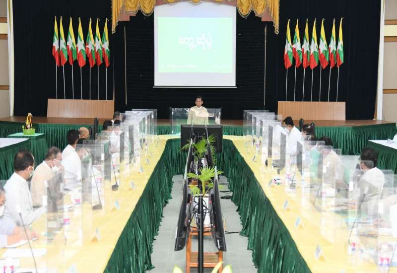 နိုင်ငံတော်စီမံအုပ်ချုပ်ရေးကောင်စီ အစည်းအဝေး (၅/၂၀၂၂)ကို ယနေ့ မွန်းလွဲပိုင်းတွင် နေပြည်တော်ရှိ နိုင်ငံတော်စီမံအုပ်ချုပ်ရေးကောင်စီ ဥက္ကဋ္ဌရုံး အစည်းအဝေးခန်းမ၌ ကျင်းပရာ နိုင်ငံတော်စီမံအုပ်ချုပ်ရေးကောင်စီ ဥက္ကဋ္ဌ၊ နိုင်ငံတော်ဝန်ကြီးချုပ် ဗိုလ်ချုပ်မှူးကြီး မင်းအောင်လှိုင် တက်ရောက် အမှာစကား ပြောကြားသည်။