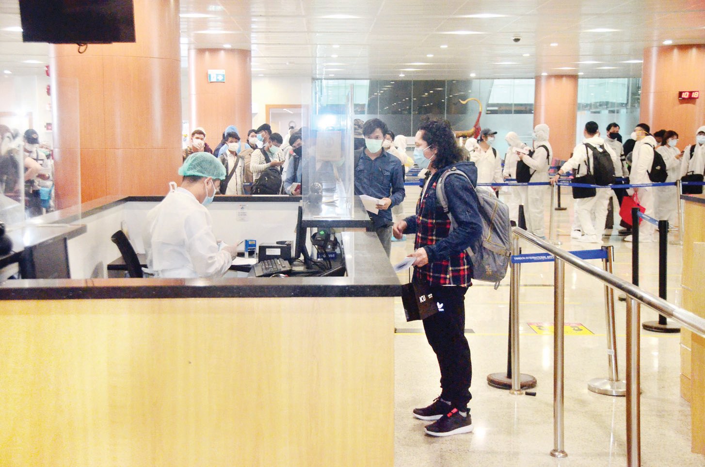 ၎င်းတို့ ရန်ကုန်အပြည်ပြည်ဆိုင်ရာလေဆိပ်သို့ ရောက်ရှိချိန်တွင် လူဝင်မှုကြီးကြပ်ရေး၊ ကျန်းမာရေး စိစစ်ရေး၊ သီးသန့် စီစဉ်ပေးသည့် နေရာ / သတ်မှတ်ဟိုတယ်များ၌ အသွားအလာကန့်သတ်မှု ၁၄ ရက် နှင့် နေအိမ်တွင် အသွားအလာ ကန့်သတ်မှု ခုနစ်ရက် နေထိုင်စေရေး တို့ကို အလုပ်သမား၊ လူဝင်မှုကြီးကြပ်ရေးနှင့်ပြည်သူ့အင်အားဝန်ကြီးဌာန၊ ကျန်းမာရေး နှင့်အားကစားဝန်ကြီးဌာနနှင့် ရန်ကုန်တိုင်းဒေသကြီးအစိုးရအဖွဲ့တို့မှ သက်ဆိုင်ရာ အခန်း ကဏ္ဍအလိုက် တာဝန်ယူ ဆောင်ရွက်ပေးကြသည်။