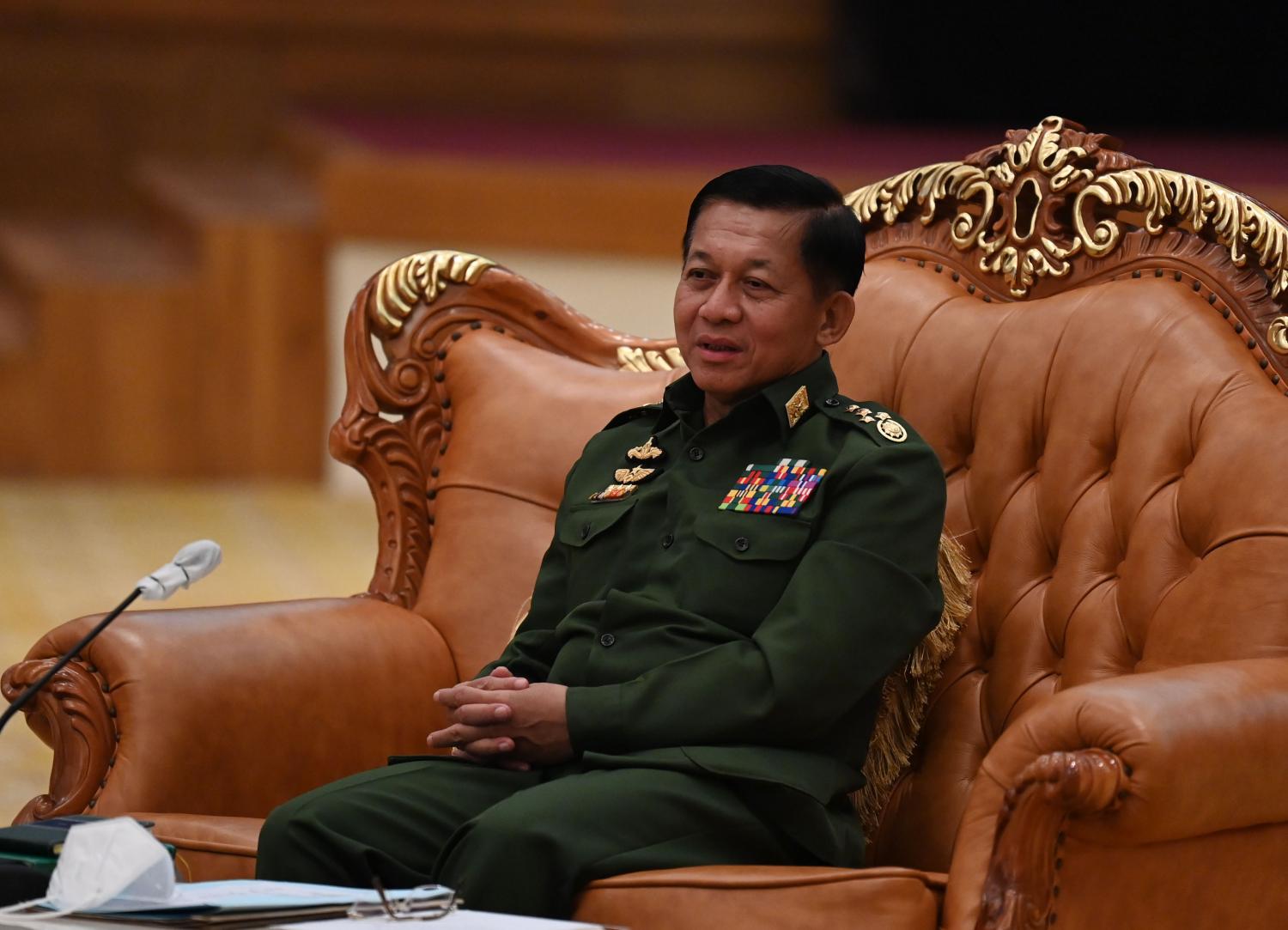 နိုင်ငံတော်စီမံအုပ်ချုပ်ရေးကောင်စီဥက္ကဋ္ဌ၊ တပ်မတော်ကာကွယ်ရေးဦးစီးချုပ် ဗိုလ်ချုပ်မှူးကြီး မင်းအောင်လှိုင်သည် ယနေ့နံနက်ပိုင်းတွင် နေပြည်တော်ရှိ နိုင်ငံတော် သမ္မတအိမ်တော် ငုရွှေဝါခန်းမ၌ မြန်မာနိုင်ငံဘဏ်များအသင်း နာယက၊ ဥက္ကဋ္ဌနှင့် တာဝန်ရှိသူများ၊ ပုဂ္ဂလိက ဘဏ်များမှ ဥက္ကဋ္ဌများ၊ ဒုတိယဥက္ကဋ္ဌများ၊ တာဝန်ရှိသူများနှင့် တွေ့ဆုံသည်။