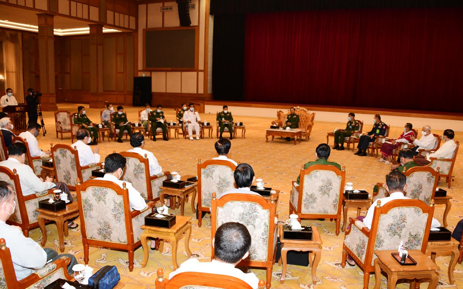 နိုင်ငံတော်စီမံအုပ်ချုပ်ရေးကောင်စီဥက္ကဋ္ဌ၊ တပ်မတော်ကာကွယ်ရေးဦးစီးချုပ် ဗိုလ်ချုပ်မှူးကြီး မင်းအောင်လှိုင် မြန်မာနိုင်ငံဘဏ်များအသင်း နာယက၊ ဥက္ကဋ္ဌနှင့် တာဝန်ရှိသူများ၊ ပုဂ္ဂလိက ဘဏ်များမှ ဥက္ကဋ္ဌများ၊ ဒုတိယဥက္ကဋ္ဌများ၊ တာဝန်ရှိသူများနှင့်တွေ့ဆုံ
