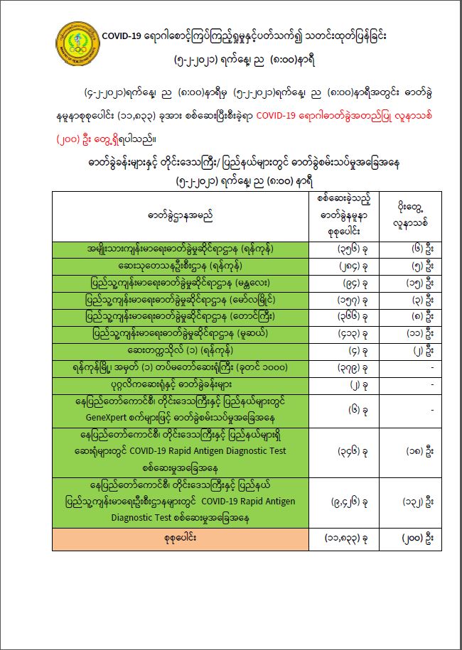 COVID-19 ရောဂါ စောင့်ကြပ်ကြည့်ရှုမှုနှင့် ပတ်သက်၍ သတင်းထုတ်ပြန်ခြင်း (5-2-2021, 8:00 PM)