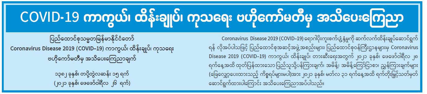 COVID -19 ကာကွယ်၊ ထိန်းချုပ်၊ ကုသရေး ဗဟိုကော်မတီမှ အသိပေးကြေညာ