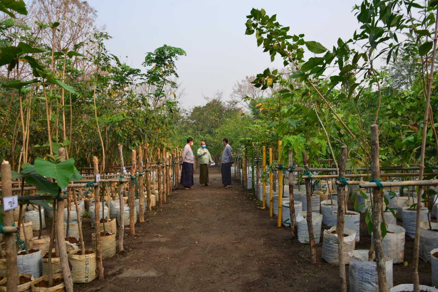 ဆက်လက်၍ ပြည်ထောင်စုဝန်ကြီးနှင့်အဖွဲ့သည် သစ်တောဦးစီးဌာန၊ ညွှန်ကြားရေးမှူး ချုပ်ရုံးဝန်းရှိ ပျိုးဥယျာဉ်ကို ကြည့်ရှုစစ်ဆေးရာ ပျိုးဥယျာဉ်တာဝန်ရှိသူများက ညွှန်ကြားရေးမှူး ချုပ်ရုံးဝန်း၊ ပျိုးဥယျာဉ်တွင်အမြင့် (၂)ပေနှင့် အထက် ပျိုးပင်ကြီးသစ်မျိုး (၃၄)မျိုး၊ အပင် (၁၁၀၀၀)ကို ပြုစုပျိုးထောင်ထားရှိပြီးဖြစ်ကြောင်းနှင့် ယခုနှစ် ၂၀၂၁ ခုနှစ်တွင် စတင် ပျိုးထောင် သည့် ပျိုးပင်သစ်မျိုး (၄၇)မျိုး၊ အပင်(၁၅၀၀၀၀)ကို ပျိုးထောင် ထားရှိပါကြောင်း ၊ အဆိုပါအမြင့် (၂)ပေနှင့်အထက် ပျိုးပင်ကြီးများကို လာမည့်၂၀၂၁ ခုနှစ် (မိုးရာသီ)တွင် မြေချစိုက်ပျိုးနိုင်ရေး ဖြန့်ဝေ ဆောင် ရွက်သွားမည်ဖြစ်ကြောင်း ၊ ယခုနှစ် ၂၀၂၁ ခုနှစ်တွင် စတင်ပျိုးထောင်သည့် ပျိုးပင်များကိုလည်း လာမည့်နှစ် မိုးရာသီများတွင် ဖြန့်ဝေစိုက်ပျိုး နိုင်ရေးအတွက် ပြုစုပျိုး ထောင်သွားမည်ဖြစ်ကြောင်း ရှင်းလင်း တင်ပြသည်။