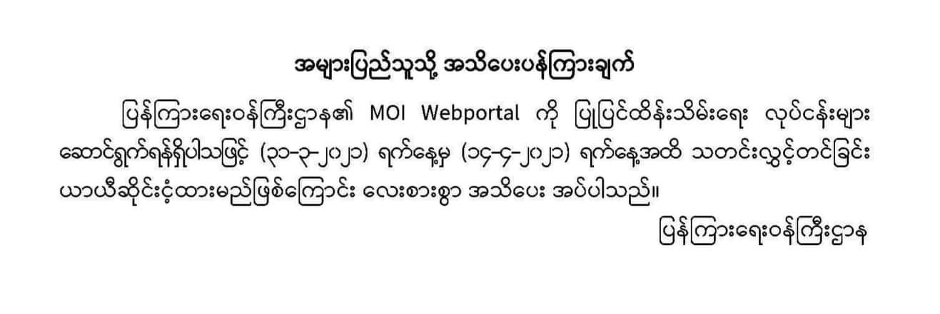 အများပြည်သူသို့ အသိပေးပန်ကြားချက်