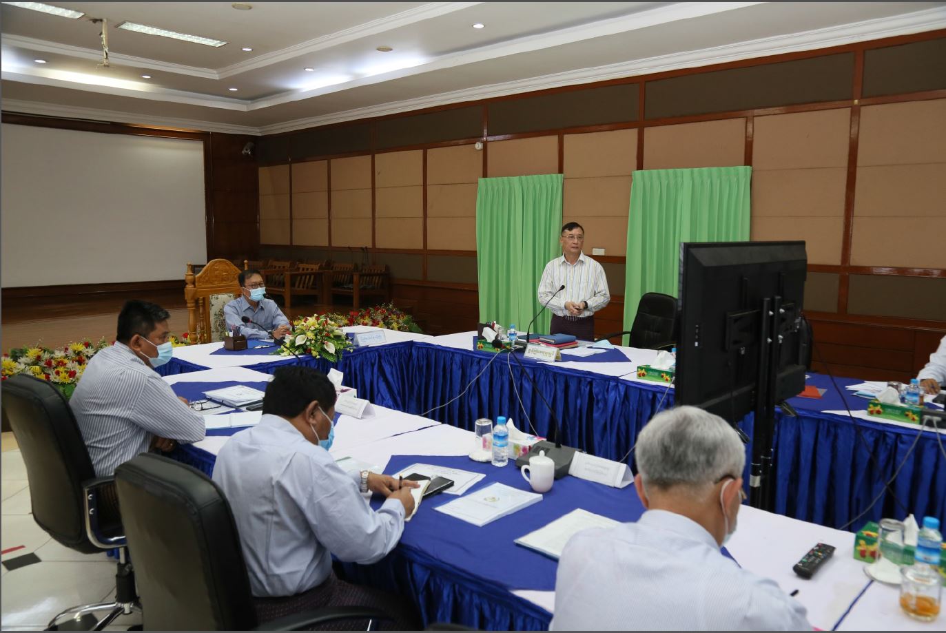 တွေ့ဆုံစဉ်  အကောက်ခွန်ဦးစီးဌာန၊ ညွှန်ကြားရေးမှူးချုပ် ဦးကျော်ထင်က ဦးစီးဌာန၏ လုပ်ငန်းဆောင်ရွက်မှုဆိုင်ရာ ကိစ္စရပ်များကို ရှင်းလင်းတင်ပြသည်။