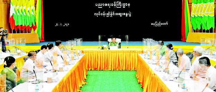 နိုင်ငံတော်စီမံအုပ်ချုပ်ရေးကောင်စီ သတင်း ထုတ်ပြန်ရေးအဖွဲ့နဲ့ ၄/၂၀၂၁ သတင်းစာရှင်းလင်းပွဲကို ဧပြီ ၉ ရက်နေ့က ကျင်းပခဲ့တယ်။ နိုင်ငံတော် စီမံအုပ်ချုပ်ရေးကောင်စီရဲ့ စီးပွားရေး ကျန်းမာရေးနဲ့ နိုင်ငံတော်ကာကွယ်ရေး၊ လုံခြုံရေးနဲ့ ပညာရေးစတဲ့ ကဏ္ဍတွေမှာ ဖွံ့ဖြိုးတိုးတက်အောင် တိုးမြှင့်ဆောင် ရွက်နိုင်အောင်၊ နိုင်ငံသားတိုင်းနဲ့ တိုင်းရင်းသား တိုင်း နိုင်ငံသားမှတ်ပုံတင်ရရှိအောင် ဆောင်ရွက်နေတဲ့ လုပ်ငန်းစဉ်တွေကို မီဒီယာတွေထံ ရှင်းလင်းပြောကြား ခဲ့တာ ဖြစ်ပါ တယ်။ ထို့အတူ နိုင်ငံတော်အကြီးအကဲ များက ဒေသဖွံ့ဖြိုးရေးနဲ့ လုံခြုံရေးလုပ်ငန်းများ ပိုမိုဆောင်ရွက်နိုင်ဖို့ သွားရောက်ခဲ့တဲ့ ခရီးစဉ်များ၊ တည်ငြိမ်အေးချမ်းရေးအတွက်ဆောင်ရွက်ချက်များ၊ ပြည်သူများအတွက် အန္တရာယ်ဖြစ် စေမယ့် မူးယစ် ဆေးဝါးရောင်းဝယ်မှုတိုက်ဖျက်ရေး ဆောင်ရွက်ချက် များ၊ စစ်နည်းဗျူဟာအဆင့်ဟင်းပြင် ရေအောက် စစ်ဆင် မှုနဲ့ ပစ်ခတ်မှုလေ့ကျင့်ခန်း အခြေအနေများ စတာတွေကို ရှင်းလင်းပြောကြားခဲ့တာဖြစ်ပါတယ်။