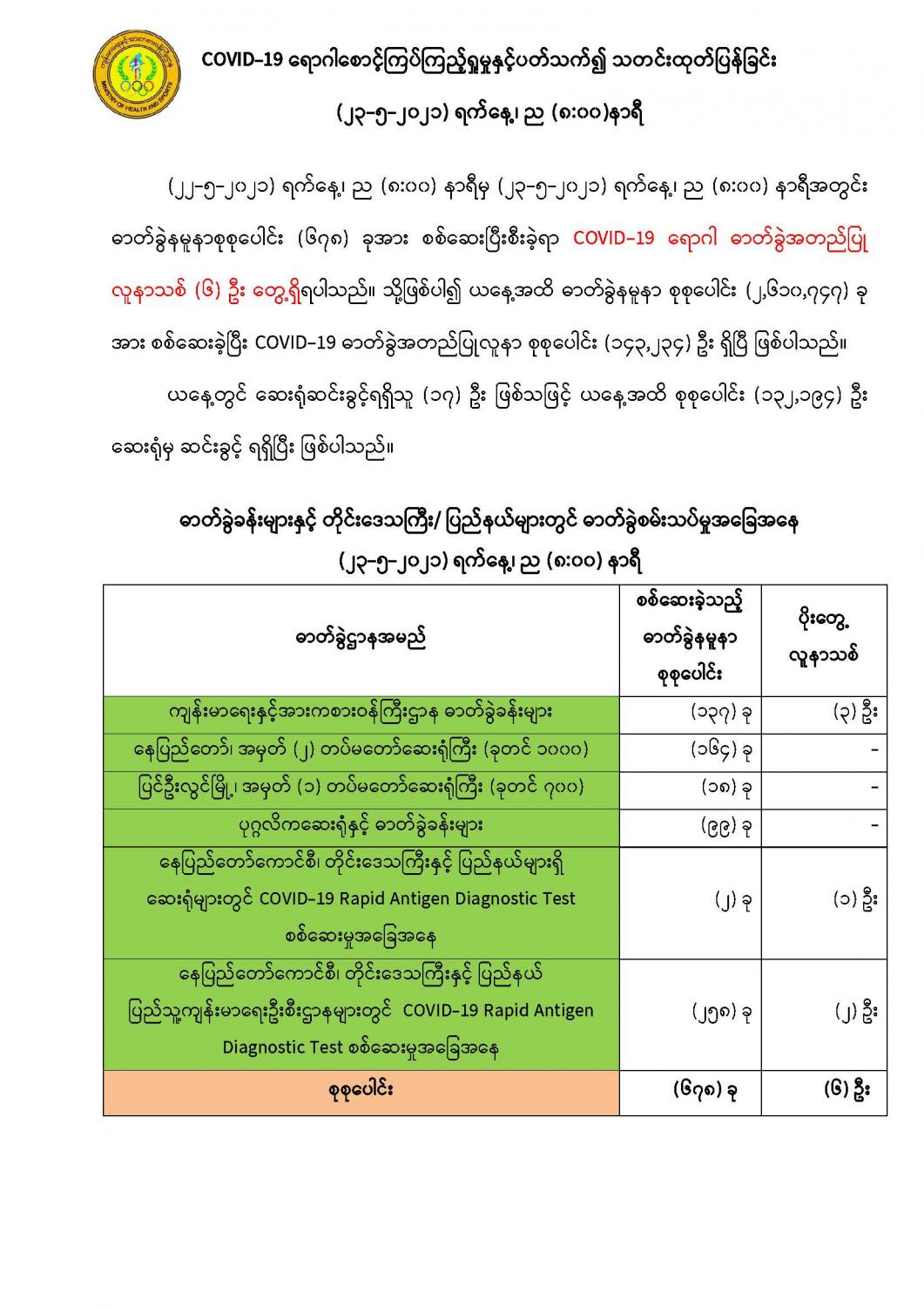 COVID-19 ရောဂါစောင့်ကြပ်ကြည့်ရှုမှုနှင့်ပတ်သက်၍ သတင်းထုတ်ပြန်ခြင်း (၂၃-၅-၂၀၂၁) ရက်နေ့၊ ည (၈:၀၀)နာရီ
