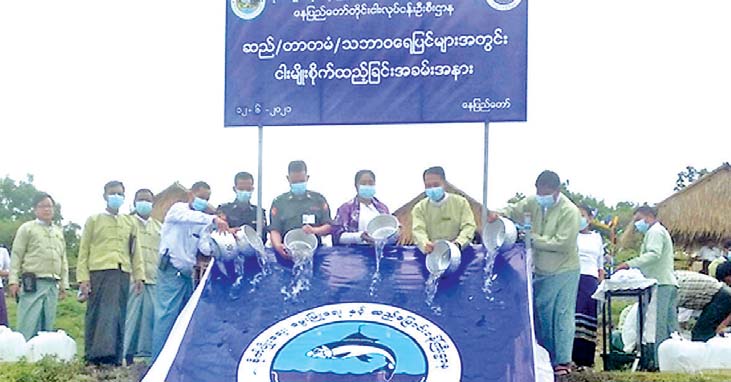ငါးမျိုး စိုက်ထည့်ပွဲသို့ နေပြည်တော်တိုင်း ငါးလုပ်ငန်း ဦးစီးဌာနမှူး ဒေါ်ညိုညိုအေး၊ ဥတ္တရသီရိ မြို့နယ် စီမံအုပ်ချုပ်ရေးအဖွဲ့ဥက္ကဋ္ဌ ဦးရဲမြတ်သိန်း၊ အဖွဲ့ဝင်များဖြစ်သော ဗိုလ်မှူး ပြည်ဖြိုးမင်း နှင့် ဦးမျိုးချစ်၊ ဥတ္တရခရိုင် ငါးလုပ်ငန်းဦးစီးဌာနမှူး ဦးဇော်သန်း၊ ဒက္ခိဏခရိုင် ငါးလုပ်ငန်း ဦးစီးဌာနမှူး ဦးရဲလွင်သိန်း၊ မြို့နယ်ဆည်မြောင်းဦးစီး ဌာနမှူး၊ မြို့နယ်မီးသတ်တပ်ဖွဲ့ ဦးစီးမှူး၊ ရေဆင်းငါးလုပ်ငန်း စခန်းတာဝန်ခံ ဦးစိုးပိုင်၊ မြို့နယ် ငါးလုပ်ငန်း ဦးစီးမှူးများနှင့် ဝန်ထမ်းများ၊ ကျေးရွာစီမံအုပ်ချုပ်ရေးအဖွဲ့ဥက္ကဋ္ဌနှင့် အဖွဲ့ဝင်များ၊ ရေလုပ်သားများက ရေဆင်းငါးလုပ်ငန်း စခန်းမှ နှစ်လက်မအရွယ် ရွှေဝါငါးကြင်း၊ ငါးမြစ်ချင်းနှင့် ငါးခုံးမကောင်ရေ ၂၀၀၀၀ ကို မျိုးစိုက် ထည့်ပေးပြီး ဥတ္တရခရိုင် ငါးလုပ်ငန်းဦးစီးမှူးကရေလုပ်သားများအား ငါးသယံဇာတထိန်းသိမ်း ရေးအတွက် ငါးမျိုးစိုက်ထည့်ရ ခြင်း၏ ရည်ရွယ်ချက်နှင့် ငါးရစ်ငါးသန် တားမြစ်ကာလအတွင်း ငါးမဖမ်းဆီးရေးနှင့် တရားမဝင် ငါးဖမ်းဆီးခြင်းဖြစ်သော ဘက်ထရီ ရှော့ဖြင့် ငါးဖမ်းဆီးခြင်းမပြု ရေးတို့အား အသိပညာပေး ဟောပြောဆွေးနွေးခဲ့ကြောင်း သိရသည်။