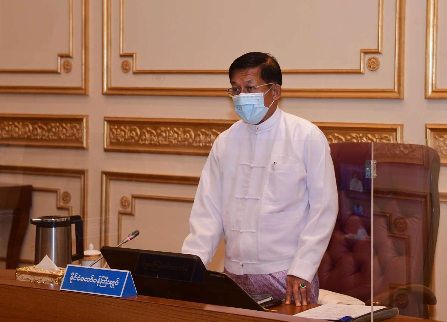 ဘဏ္ဍာရေးဆိုင်ရာကော်မရှင် အစည်းအဝေးအမှတ်စဉ် (၁/၂၀၂၁) ကို ယနေ့ မွန်းလွဲပိုင်းတွင် နေပြည်တော်ရှိ နိုင်ငံတော်စီမံ အုပ်ချုပ်ရေးကောင်စီဥက္ကဋ္ဌရုံး အစည်းအဝေးခန်းမ၌ ကျင်းပရာ ဘဏ္ဍာရေးဆိုင်ရာကော်မရှင်ဥက္ကဋ္ဌ၊ နိုင်ငံတော်စီမံအုပ်ချုပ်ရေး ကောင်စီဥက္ကဋ္ဌ၊ နိုင်ငံတော် ဝန်ကြီးချုပ် ဗိုလ်ချုပ်မှူးကြီးမင်းအောင်လှိုင် တက်ရောက်အမှာစကား ပြောကြားသည်။