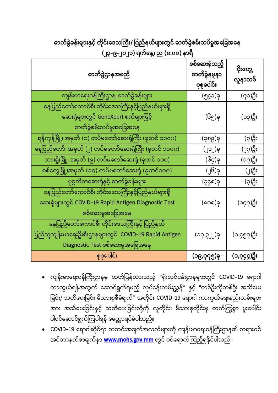 COVID-19 ရောဂါ စောင့်ကြပ်ကြည့်ရှုမှုနှင့်ပတ်သက်၍ သတင်းထုတ်ပြန်ခြင်း (၂၃-၉-၂၀၂၁) ရက်နေ့၊ ည (၈:၀၀)နာရီ 09/23/2021