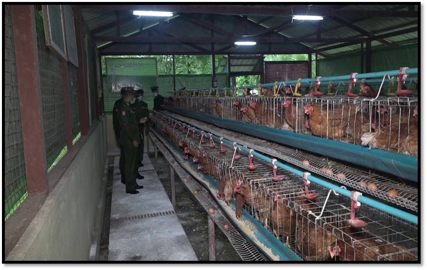 ကိုဗစ်-၁၉ ရောဂါ တတိယလှိုင်းဖြစ်ပွားမှုကြောင့် ရောဂါကာကွယ်၊ ထိန်းချုပ်၊ ကုသရေးလုပ်ငန်းများ ဆောင်ရွက် နေချိန်တွင် ဒေသတွင်းစားနပ်ရိက္ခာဖူလုံရေးနှင့် ပြည်သူများ ၏ စားသောက်ရေးကို အထောက်အကူဖြစ်စေရန်အတွက် တိုင်းစစ်ဌာန ချုပ်နယ်မြေအသီးသီးရှိ အစိုးရ၊ တပ်မတော်နှင့် ပုဂ္ဂလိကပိုင် ဒေသတွင်းစိုက်ပျိုးမွေးမြူ ရေးနှင့် အခြား လူသုံး ကုန်လုပ်ငန်းများ ကုန်ထုတ်လုပ်မှုရာနှုန်းပြည့်ထုတ်လုပ်နိုင်ရေး ဆောင်ရွက်လျက်ရှိရာ တိုင်း ဒေသကြီးနှင့် ပြည်နယ်အသီးသီးမှ ဝန်ကြီးချုပ်များ၊ တိုင်းမှူးများနှင့် တာဝန်ရှိသူများက အဆိုပါ နေရာများသို့ သွားရောက်ကြည့်ရှု ကြပြီး လိုအပ်သည်များ ဖြည့်ဆည်းဆောင်ရွက်ပေး လျက်ရှိသည်။