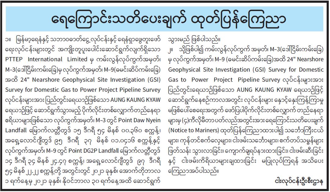 ရေကြောင်းသတိပေးချက် ထုတ်ပြန်ကြေညာ