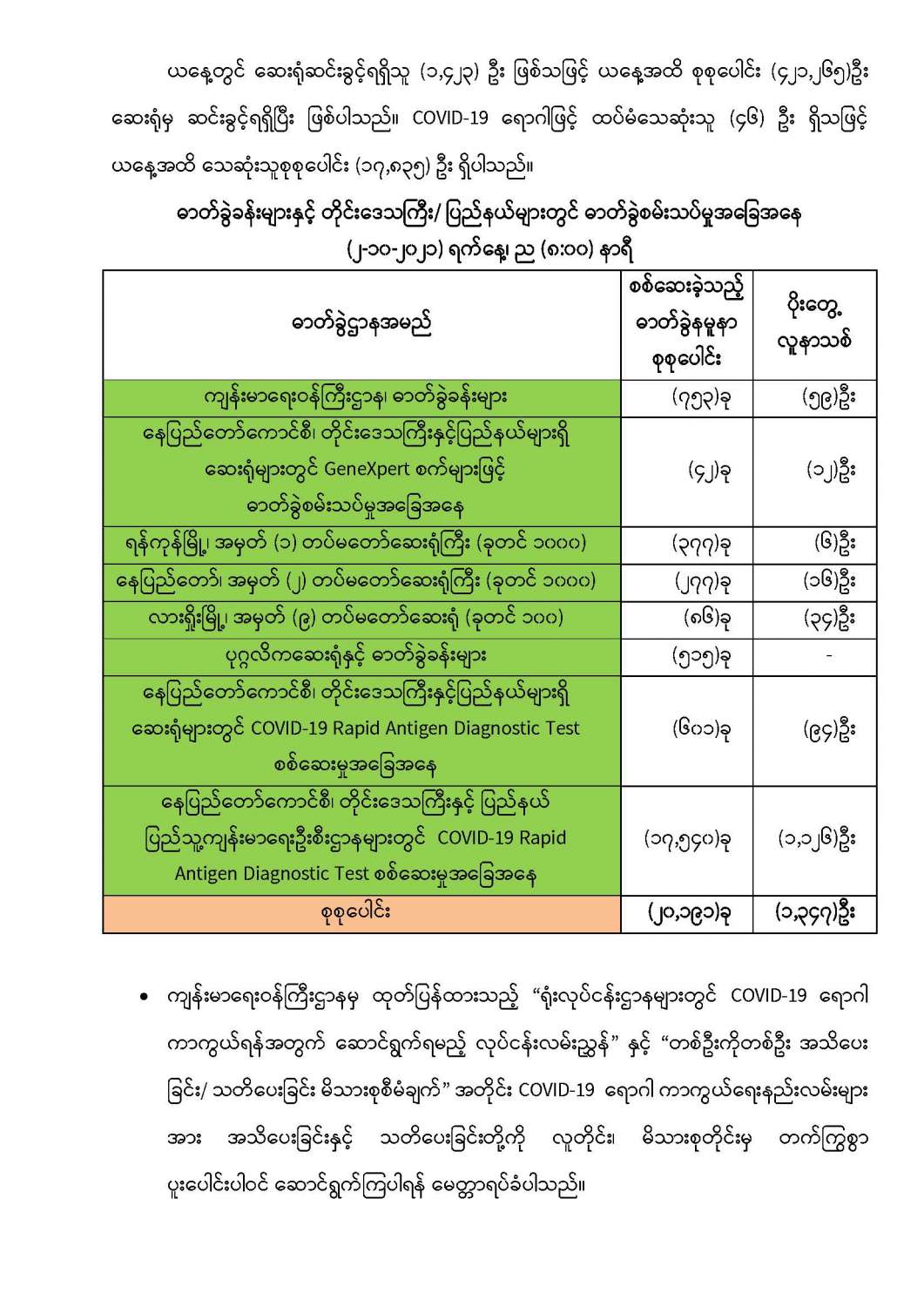 COVID-19 ရောဂါ စောင့်ကြပ်ကြည့်ရှုမှုနှင့်ပတ်သက်၍ သတင်းထုတ်ပြန်ခြင်း