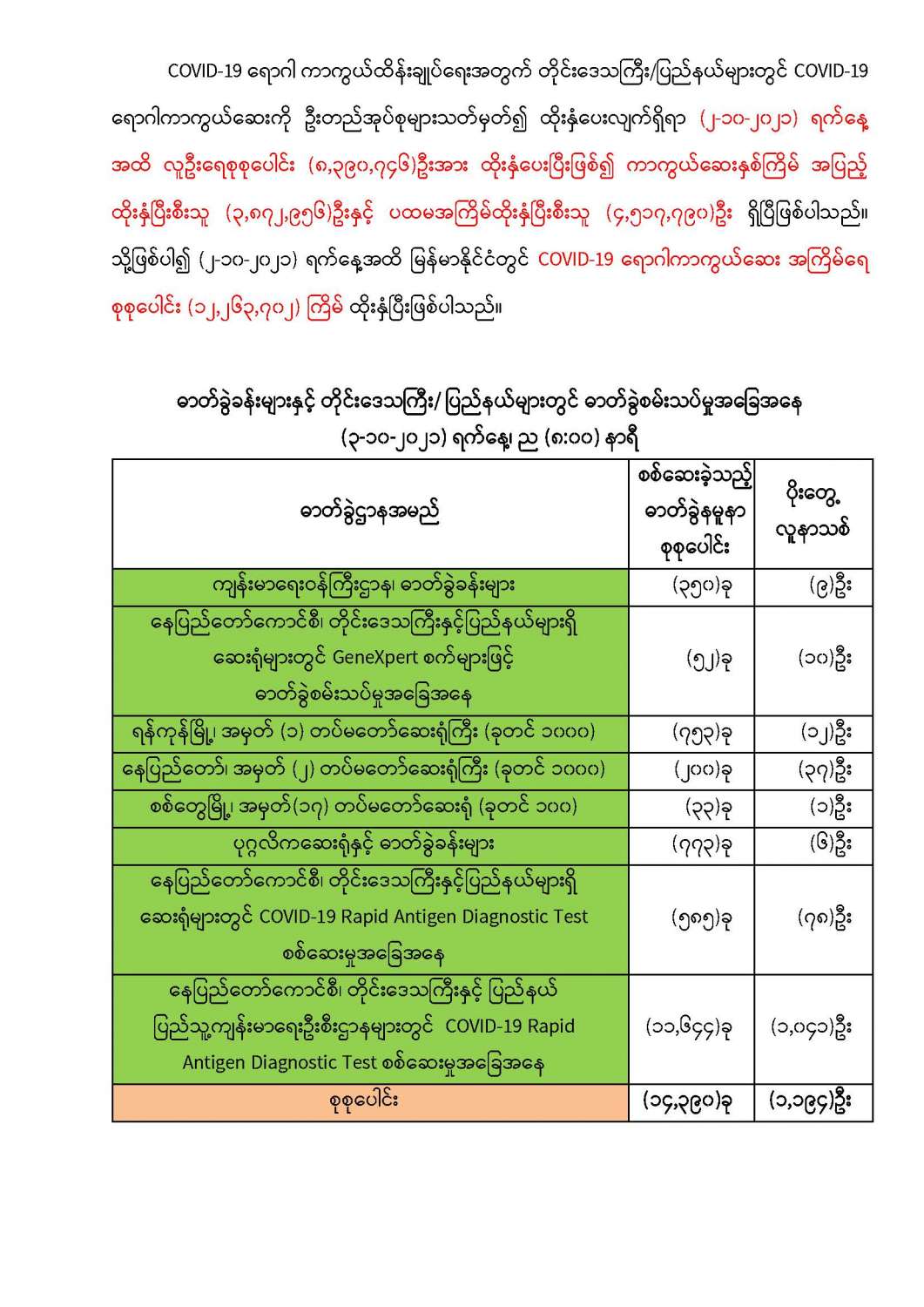 COVID-19 ရောဂါ စောင့်ကြပ်ကြည့်ရှုမှုနှင့်ပတ်သက်၍ သတင်းထုတ်ပြန်ခြင်း (၃-၁၀-၂၀၂၁) ရက်နေ့၊ ည (၈:၀၀)နာရီ 10/03/2021