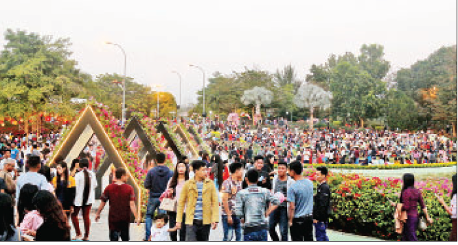 နေပြည်တော် ရေပန်းဥယျာဉ်အတွင်း ဖေဖော်ဝါရီ ၁၄ ရက်မှ စတင်ကာ ကျင်းပလျက်ရှိသည့် ပန်းပွဲတော်သို့ အများပြည်သူ ရုံးပိတ်ရက်ဖြစ်သော ယနေ့တွင် အနယ်နယ်အရပ်ရပ်မှ လာရောက် လည်ပတ်သူများသည် ပန်းပွဲတော်တွင် စိုက်ပျိုးထားသည့် ပန်းများနှင့် ဖန်တီးပုံဖော်ပြသထားသည့် ပန်းပေါင်းစုံအလှကို ခံစားအပန်းဖြေရင်း အထူးစည်ကား လျက်ရှိသည်။