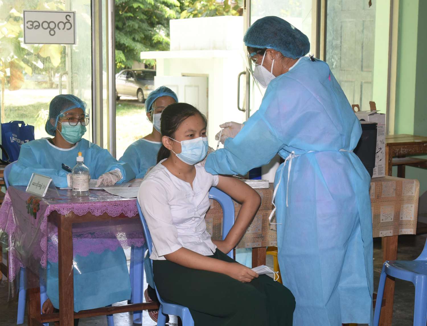 ထို့ကြောင့် မြို့နယ်အလိုက် ဆေးထိုးနှံရန် သတ်မှတ်ထားသည့် စုရပ်နေရာများ၌ အခြေခံပညာ အလယ်တန်း၊ အထက်တန်းတို့တွင် ပညာသင်ကြားလျက်ရှိသည့် ကျောင်းသား၊ ကျောင်းသူများအား နေ့ရက်အလိုက် သတ်မှတ်ထားသည့် လူဦးရေစာရင်းအလိုက် ကျန်းမာရေးဝန်ထမ်း များက ကိုဗစ် - ၁၉ ကာကွယ်ရေး နည်းလမ်းများနှင့်အညီ ကာကွယ်ဆေးထိုးနှံပေးကြသည်။