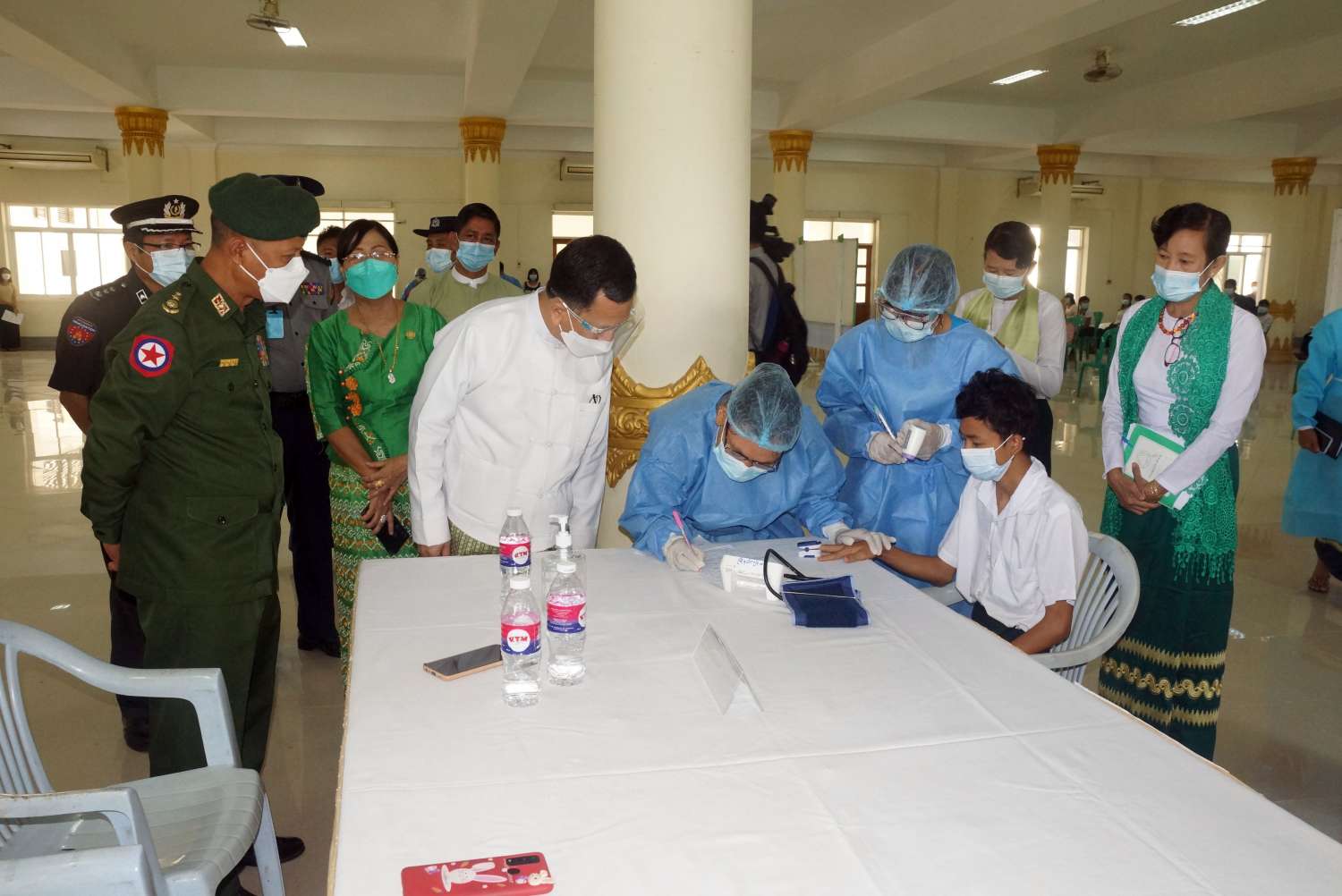 နေပြည်တော်ကောင်စီဥက္ကဋ္ဌနှင့်အဖွဲ့သည် ကိုဗစ်-၁၉ရောဂါ ကာကွယ်ဆေးထိုးနှံသည့် ဆေးထိုးစုရပ်အသီးသီးတွင် အသက်၁၂နှစ်နှင့် အထက်အခြေခံပညာအထက်တန်းနှင့် အလယ်တန်း အဆင့် ကျောင်းသား၊ ကျောင်းသူများအား ကိုဗစ်-၁၉ရောဂါကာကွယ် ဆေးထိုးနှံပေးနေမှုကို ကြည့်ရှုအားပေးပြီး ကာကွယ်ဆေးလာရောက်ထိုးနှံသည့် ကျောင်းသား၊ ကျောင်းသူများကို ရင်းရင်းနှီးနှီး အားပေးစကားပြောကြား၍ နှာခေါင်းစည်း Mask များဖြန့်ဝေပေးကာ တာဝန်ရှိသူများအား လိုအပ်သည်များကို မှာကြားသည်။