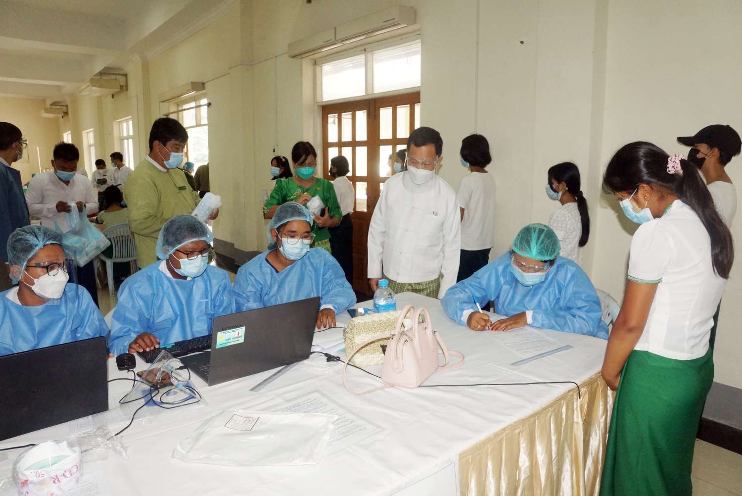 နေပြည်တော်ကောင်စီဥက္ကဋ္ဌ ဒေါက်တာမောင်မောင်နိုင်သည် နေပြည်တော်ကောင်စီအဖွဲ့ဝင်များဖြစ်ကြသည့် ဗိုလ်မှူးကြီး မင်းနောင်၊ ရဲမှူးကြီးကိုကိုလွင်၊ ဦးကျော်သိန်းဆိုင်တို့နှင့်အတူ ယနေ့နံက်ပိုင်းတွင် ပြည်ထောင်စုနယ်မြေ၊ နေပြည်တော်အတွင်းရှိ ပျဉ်းမနားမြို့နယ် မင်္ဂလာဗျူဟာသာသနာ့ဗိမာန်တော်ကြီး ဆေးထိုးစုရပ်၊ ဇမ္ဗသီရိမြို့နယ် အမှတ်(၇) အခြေခံပညာအထက်တန်း ကျောင်းဆေးထိုးစုရပ်၊ ဒက္ခိဏသီရိမြို့နယ် အမှတ်(၁၈)အခြေခံပညာ အထက်တန်း ကျောင်း ဆေးထိုးစုရပ်နှင့် လယ်ဝေးမြို့နယ် အမှတ်(၁) အခြေခံပညာအထက်တန်းကျောင်း ဆေးထိုးစုရပ်တို့တွင် အသက် ၁၂နှစ်နှင့်အထက် အခြေခံပညာအထက်တန်းနှင့် အလယ်တန်းအဆင့် ကျောင်းသား၊ ကျောင်းသူများအား ကိုဗစ်-၁၉ ရောဂါကာကွယ် ဆေးထိုးနှံပေးနေမှုကို လှည့်လည်ကြည့်ရှု အားပေးသည်။