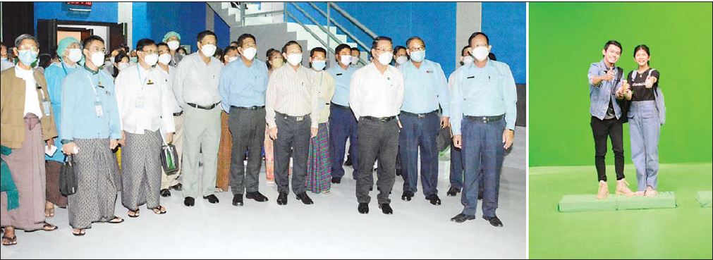 ပြန်ကြားရေးဝန်ကြီးဌာန ပြည်ထောင်စုဝန်ကြီး ဦးမောင်မောင်အုန်းသည် မြန်မာနိုင်ငံ သတင်းမီဒီယာကောင်စီ၊ မြန်မာနိုင်ငံရုပ်ရှင် အစည်းအရုံး၊ မြန်မာနိုင်ငံ ဂီတအစည်းအရုံးတို့မှ တာဝန်ရှိသူများ၊ ရုပ်ရှင်၊ သဘင်၊ ဂီတနယ်ပယ်မှ အနုပညာရှင်များ၊ TV, FM Broadcaster များနှင့်အတူ ယနေ့ မွန်းလွဲပိုင်းက ရန်ကင်းမြို့နယ် အမှတ်(၁၅) မိုးကောင်းလမ်းရှိ မြန်မာစီးပွားရေးကော်ပိုရေးရှင်း၊ သတင်းနှင့် မီဒီယာလုပ်ငန်း (မြ၀တီ) (MWD Media Centre) တွင် ကိုဗစ်-၁၉ ကပ်ရောဂါ ကာကွယ်ရေးစည်းမျဉ်းစည်းကမ်း များနှင့်အညီ ရိုက်ကူးထုတ်လုပ်ရေးလုပ်ငန်းများ ဆောင်ရွက်နေမှုကိုသွားရောက်ကြည့်ရှု လေ့လာကြသည်။
